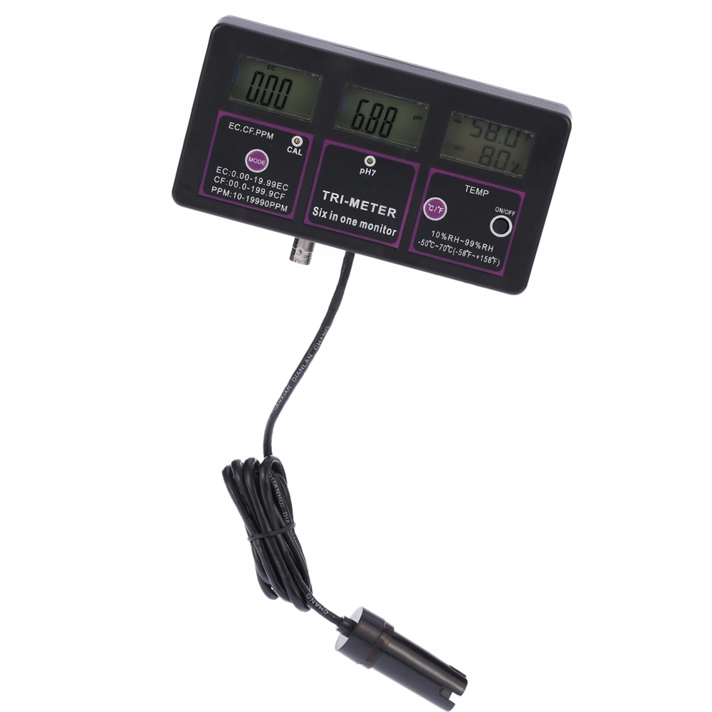 - Цей новий монітор якості води є професійним і важливим інструментом для тестування рівня pH/температури/EC/CF/RH/TDS. Підходить для акваріумного басейну, лабораторії та навколишнього середовища.