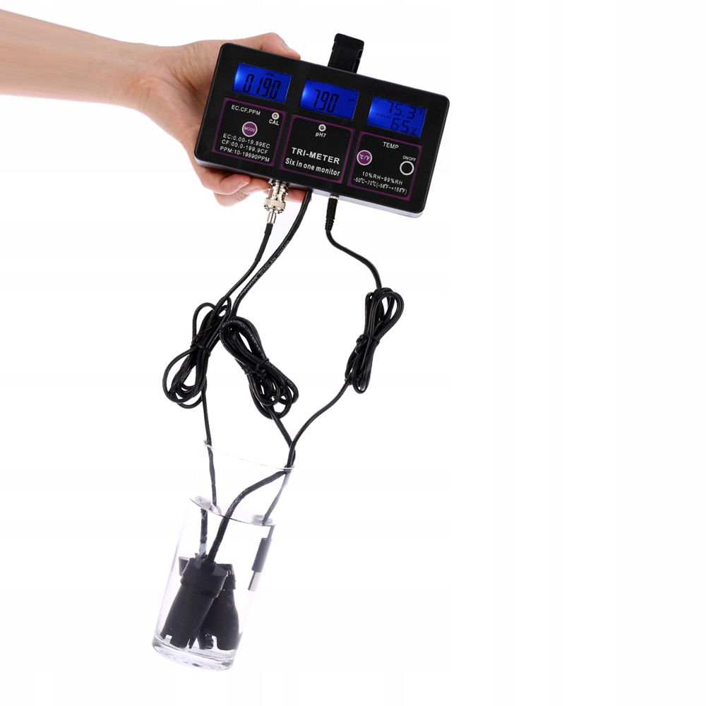 - Зазвичай використовується для вимірювання pH/RH/температури/провідності EC/CF/TDS(PPM) розчину/води.