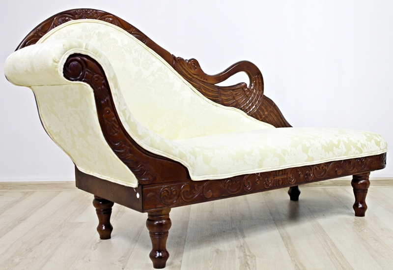 Запрошую купити стильний диван / шезлонг. Конструкція меблів виконана з екзотичної деревини - похідної червоного дерева. Має гарне різьблення у вигляді лебедя. Він чудово відображає меблі минулих епох. Диван буде красиво виглядати як в класичних кімнатах, так і в сучасних невеликих квартирах як контрастне доповнення.