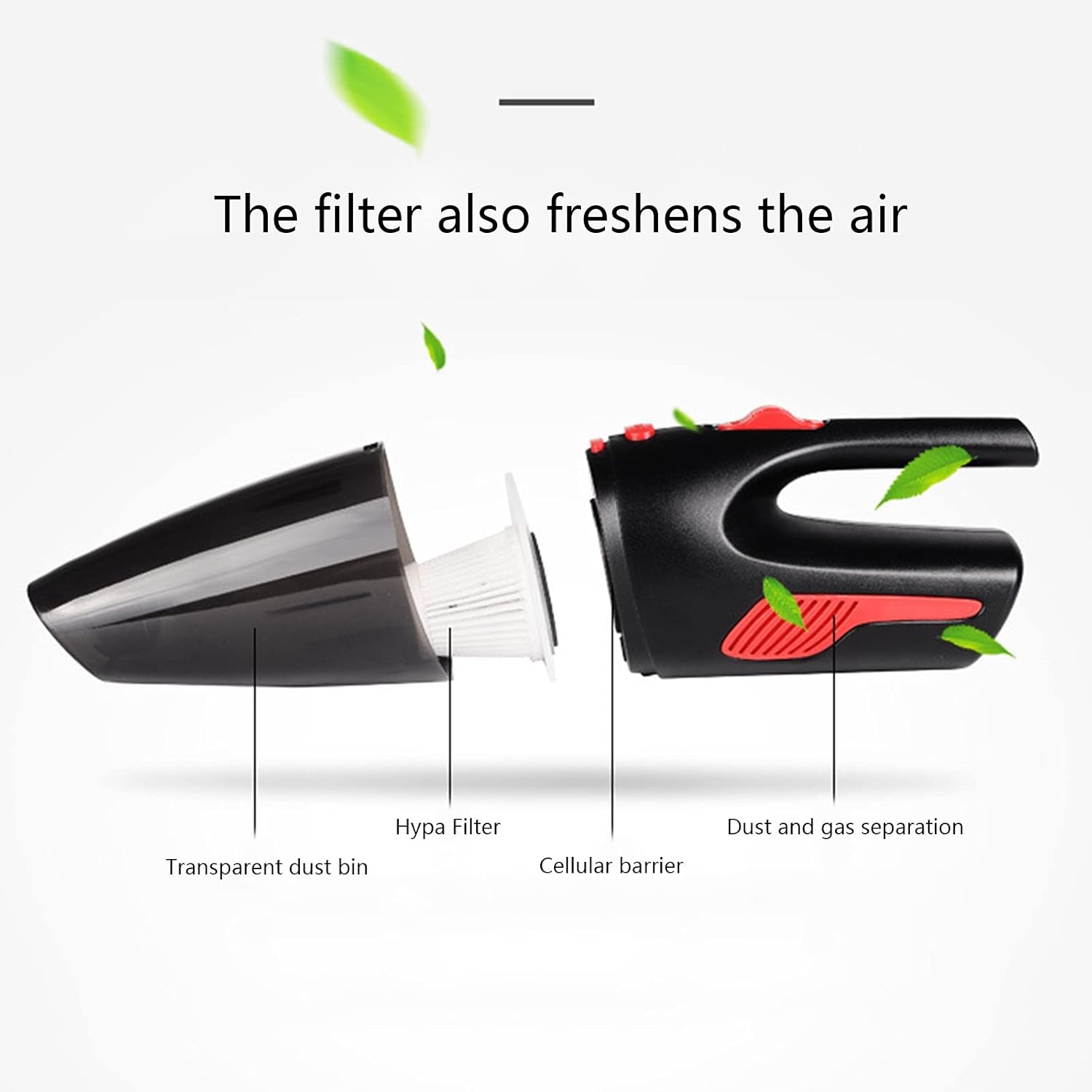1. Може, але потужний. Цей легкий автомобільний пилосос має високу потужність всмоктування. Просто увімкніть ручний пилосос, і ви побачите, що він збирає бруд. 3. Фільтр Наш автомобільний пилосос використовує систему фільтрації. Велике сміття може запобігти засміченню фільтра. Фільтр може вловлювати дрібний пил і сажу. Сітка фільтра може підвищити ефективність очищення та подовжити термін служби. 2. Простий у використанні Завдяки ергономічному дизайну, цей міні-пилосос простий у використанні, а його складні аксесуари можуть видаляти незручні кути та щілини, адже ніщо не може втекти з нашого портативного пилососа , цей компактний і портативний автомобільний пилосос можна легко помістити у валізу. Це обов'язковий аксесуар для походів у гори, прогулянок з собаками та поїздок на пляж. Брудний пісок або мокра шерсть домашніх тварин може впоратися з цим наш автомобільний пилосос 5. Подарунок Незалежно від того, збирається ваш друг купити нову машину чи просто купити цуценя, цей портативний автомобільний пилосос стане в нагоді. Цей стильний міні-пилосос для автомобіля має елегантний дизайн і це практичний подарунок, який знову цінуватиме час і час