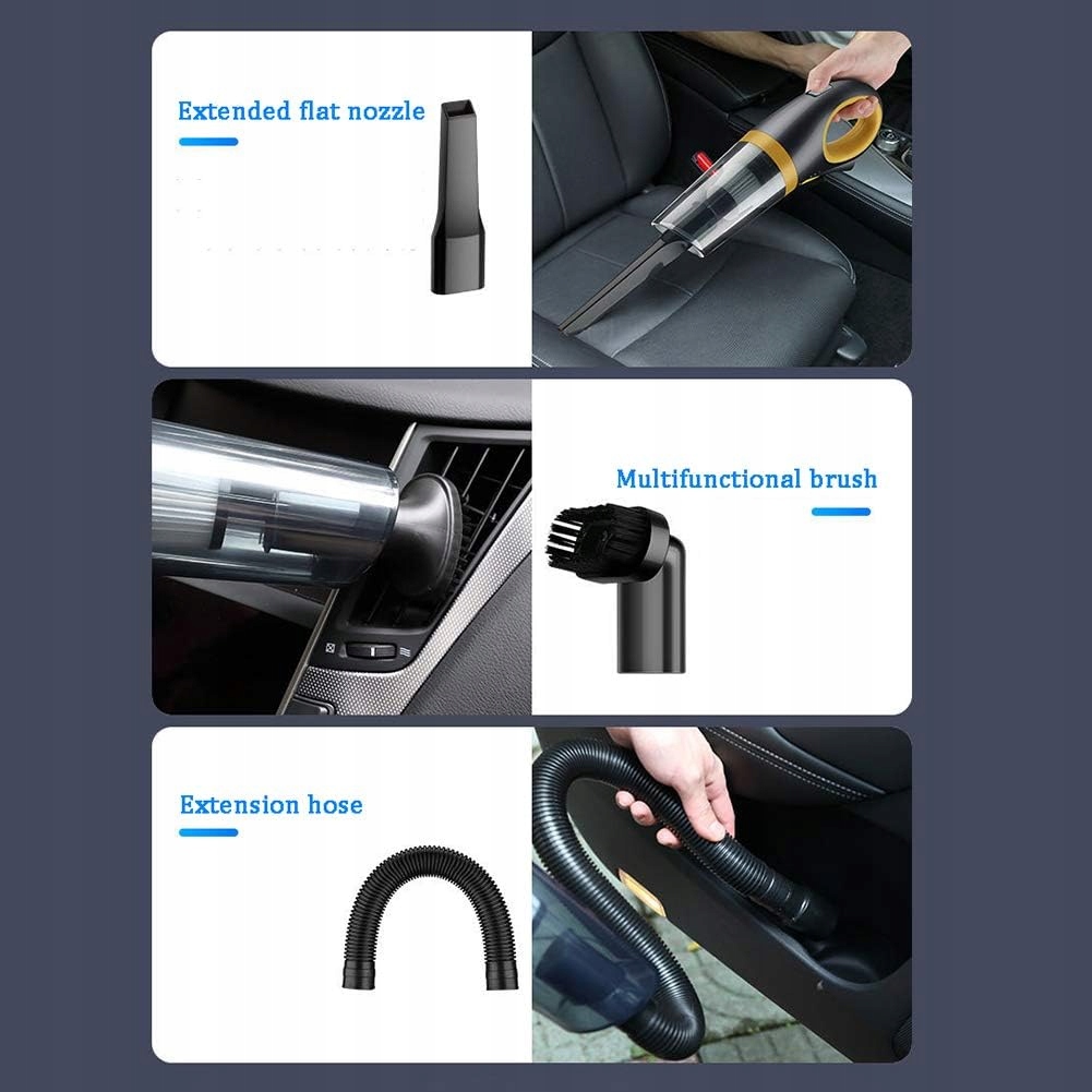 Портативний бездротовий пилосос. Цей портативний бездротовий пилосос дає змогу вільно переміщатися з кімнати в кімнату та позбавляє від клопоту з використанням шнурів. Це легка та ергономічна ручка з ременями на нижній частині корпусу, яка дозволяє легко ковзати під час чищення підлоги та кутів сидінь. Ідеально підходить для домашньої кухні для домашніх тварин. Швидке заряджання та тривалий час роботи У бездротових ручних пилососах використовується технологія швидкого заряджання, заряджання займає лише близько 34 годин. Літій-іонний акумулятор великої ємності 2000 мАг забезпечує безперервну роботу до 20 хвилин. Це означає, що ви можете прибрати всі ваші кімнати після повного заряду потужного всмоктування 6000 Па і нижчого рівня шуму, ручний пилосос забезпечує безперервне потужне всмоктування. Ефективне очищення не тільки від пилу з паперових клаптиків, а й від дрібних камінців і рідин. У той же час він добре працює, знижуючи рівень шуму до рівня менше 75 дБ під час роботи. Він навіть не заважатиме спати вашій дитині чи улюбленцю: гнучкий шланг і насадка можуть дістатися куди завгодно. Він легко прибирає пил, крихти, котячий туалет, шерсть домашніх тварин і пролиту молочну рідину. Оснащений 3 різними типами насадок для ретельного очищення всіх місць у вашому домі чи автомобілі. Вам більше не потрібно турбуватися про рідину та мертві кути фільтра HEPA. Фільтр пилососа можна мити та використовувати багаторазово. Фільтри забезпечують кращу фільтрацію та тривалий термін служби. Внутрішній фільтр HEPA видаляє дрібний пил і попіл