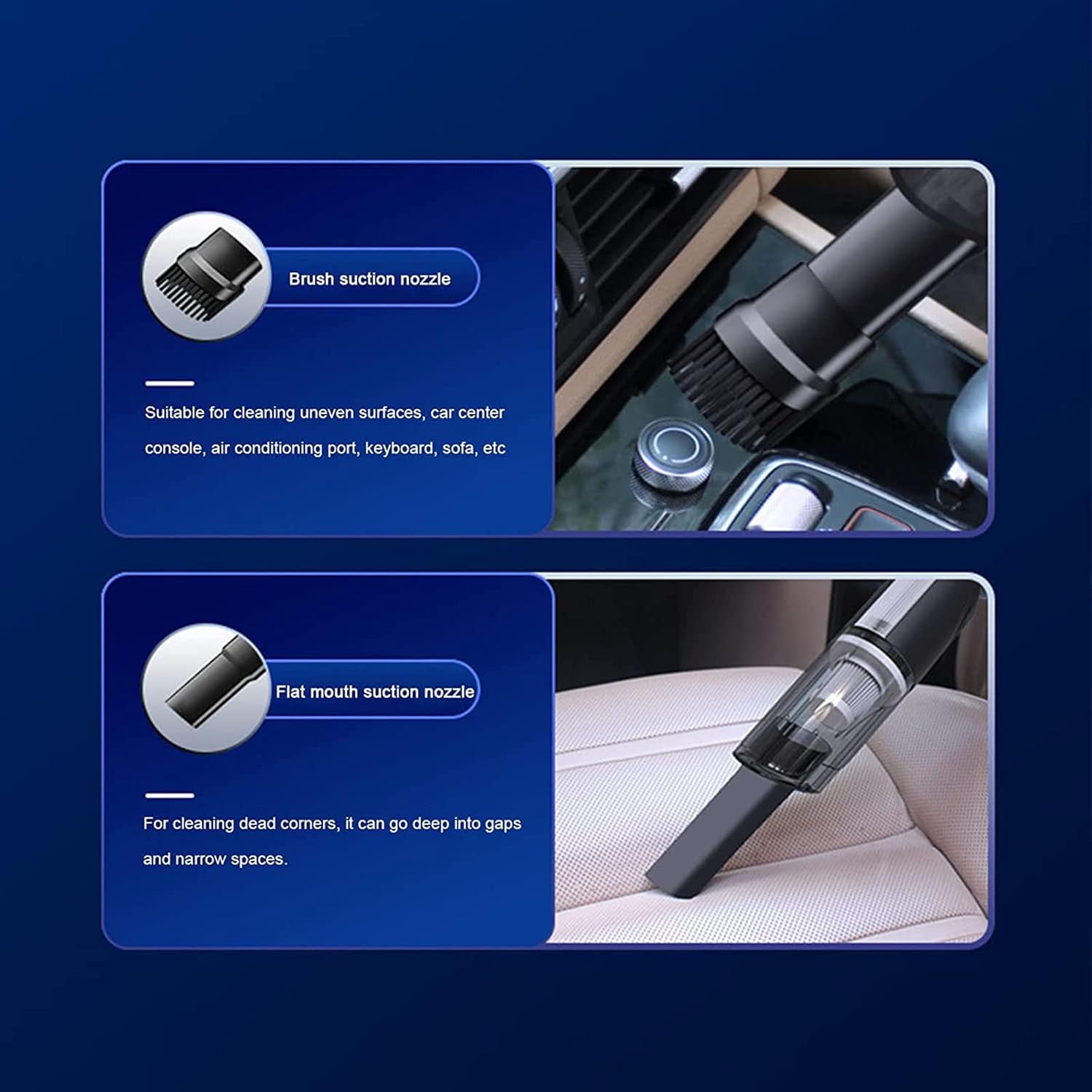 УНІВЕРСАЛЬНИЙ ТА ЕФЕКТИВНИЙ Цей портативний пилосос бездоганно працює майже на будь-якій поверхні. Він може очистити салон вашого автомобіля, диван, килим, меблі та навіть вашу клавіатуру. Забезпечте більший комфорт при прибиранні, розумно використовуйте аксесуари для різних сценаріїв. НАСОЛОДУЙТЕСЯ БЕЗДРОТОВОЮ СВОБОДОЮ Навіть важкодоступні місця можна легко очистити, оскільки ви більше не зв’язані кабелями. Цей ручний пилосос дає користувачеві свободу пересування по дому, машині або в вузьких кутах без кабелів. ШВИДКЕ ЗАРЯДЖАННЯ ТА БАТАРЕЯ Ручний пилосос з акумулятором і технологією швидкого заряджання забезпечує чудову продуктивність. Ручний пилосос має температурний захист, захист від вхідного струму, захист від вхідної напруги та захист від короткого замикання, щоб забезпечити безпеку пристрою протягом усього процесу заряджання. Автомобільний пилосос може безперервно працювати 2030 хвилин після повної зарядки протягом 34 годин. ЕРГОНОМІЧНИЙ ДИЗАЙН Завдяки компактному корпусу цього ручного пилососа його дуже зручно носити з собою. Виріб важить 068 фунтів, а його легкий корпус дозволяє виконувати прибирання протягом тривалого часу, не напружуючи руки. НАКЛАДКИ Цей ручний бездротовий пилосос постачається з 2 різними насадками, які краще відповідають вашим потребам у прибиранні. Щітка з наконечником щітки може видалити бруд з автомобільних дисків і вентиляційних отворів автокондиціонера, а також з клавіатури та інші забруднення. Інструмент з довгою насадкою можна використовувати в щілинах автомобільних сидінь, а також в диванах, щілинах і куточках у внутрішніх приміщеннях.