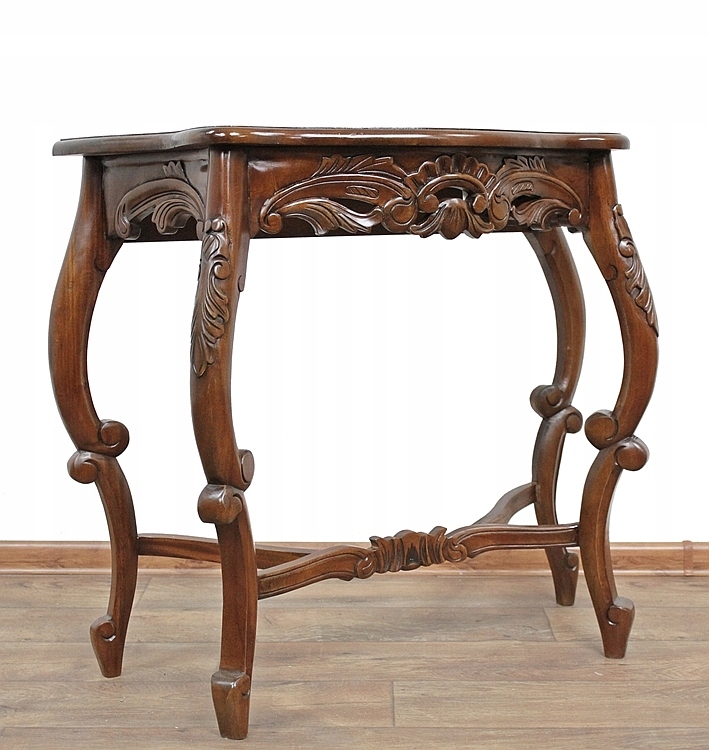 Чарівний дерев'яний предмет меблів із зігнутими ніжками та красивим різьбленням.