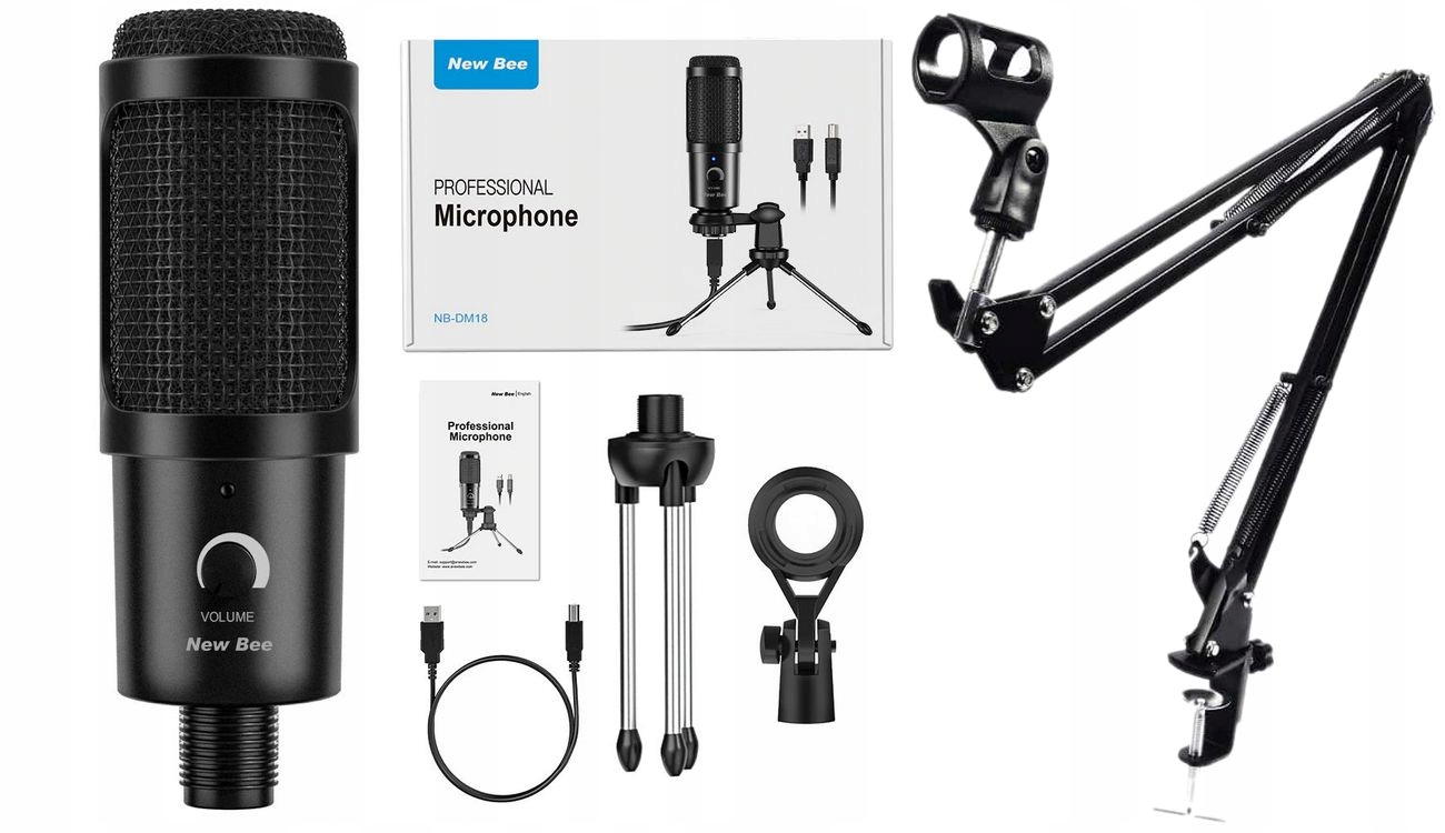 Мікрофон New Bee DM18 — це набір із USB-мікрофона та настільної підставки. Кардіоїдна характеристика, найкраще підходить для домашнього використання. Мікрофон призначений для людей, які хочуть покращити якість звуку в онлайн-месенджерах, таких як Discord, Teams, Skype, Zoom, Twitch, YouTube тощо. Він ідеально підходить для навчання та віддаленої роботи. Мікрофон DM18 має інтерфейс USB, що робить його сумісним з багатьма операційними системами, напр. Ігрові консолі Windows, iOS і PS4.