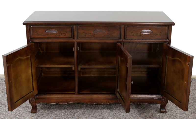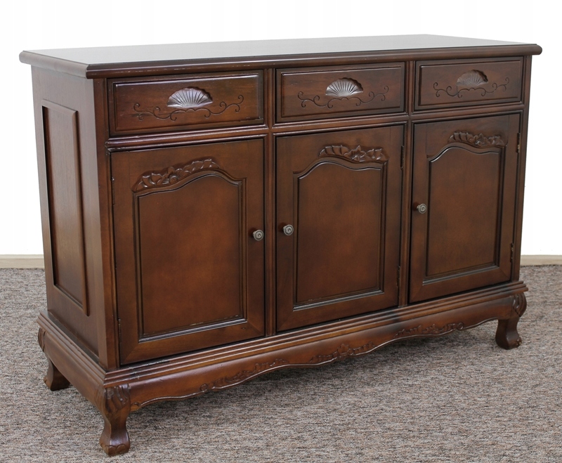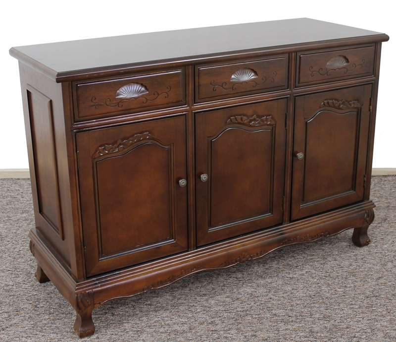 СТИЛЬНИЙ, ВЕЛИКИЙ, РІЗЬБЛЕНИЙ КОМОД З КОМОДАМИ КОЛЬОРУ ТЕМНОГО ГОРІХУ.