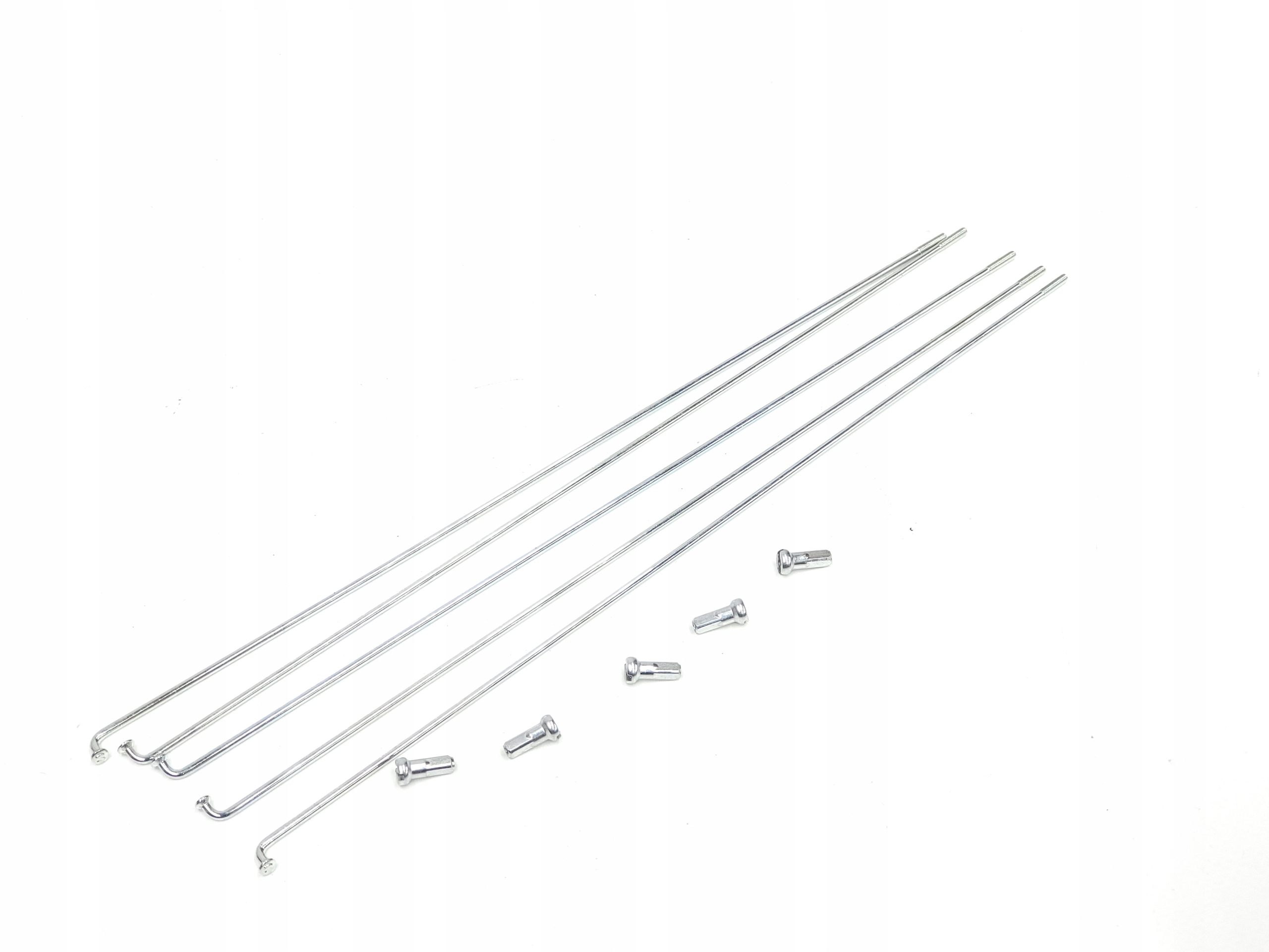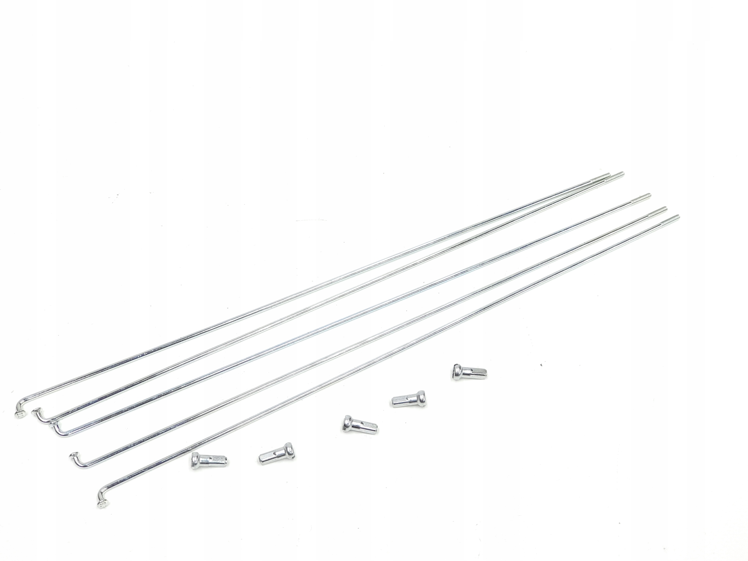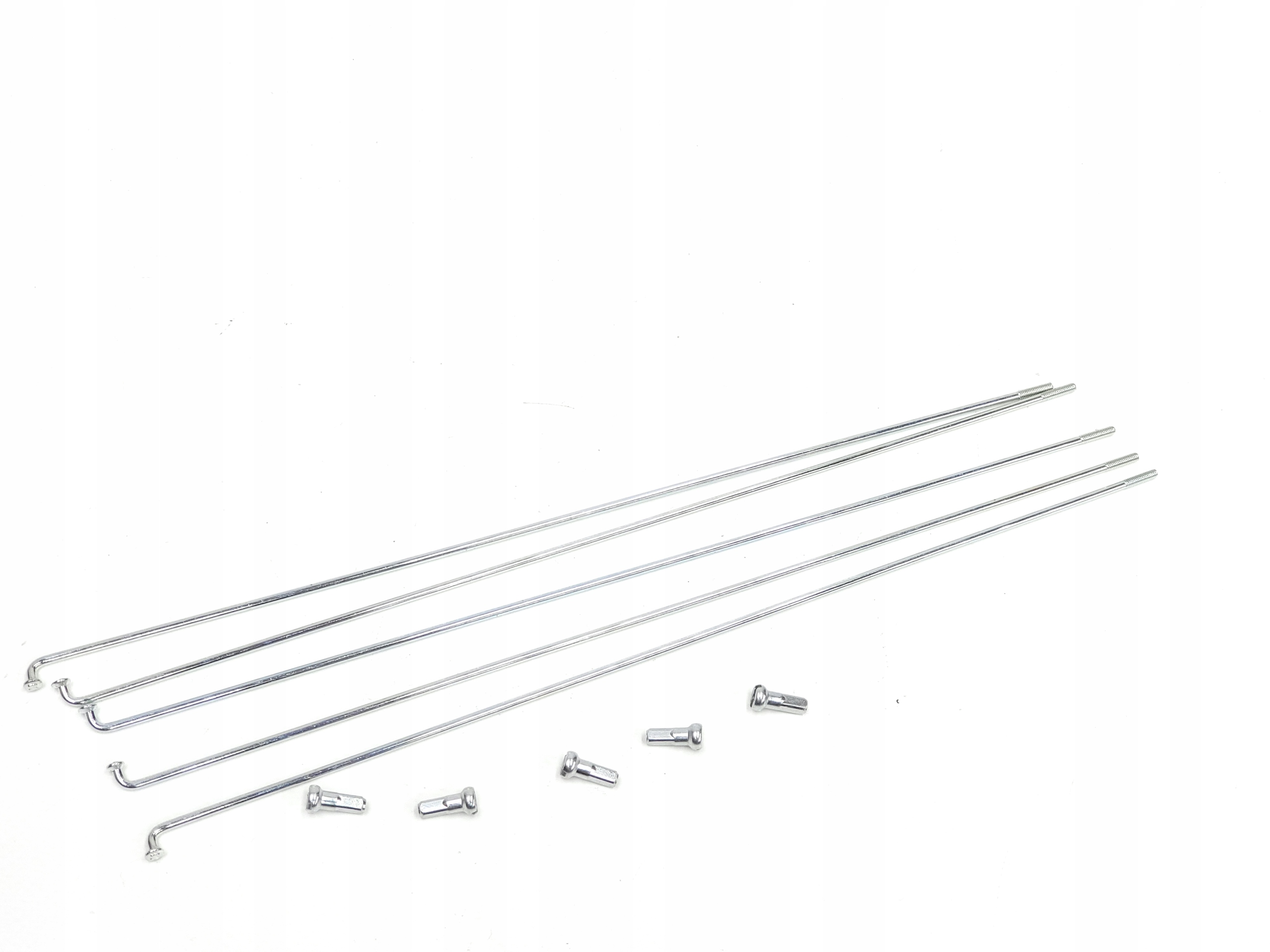 НОВИЙ Комплект спиць переднього колеса (24 дюйми) для велосипедів Romet Konsul Turing Orion, який відповідає круглому ободу, у випадку трапецієподібного обода (старішого типу), який не тестувався, він може не підходити або може знадобитися вкоротити спицю, щоб запобігти проколу камери. Набір підібрано відповідно до оригінальних розмірів Zakłady Rowerowe Romet, присвячених вищезгаданим велосипедам. У комплекті: 5 спиць і 5 ніпелів.