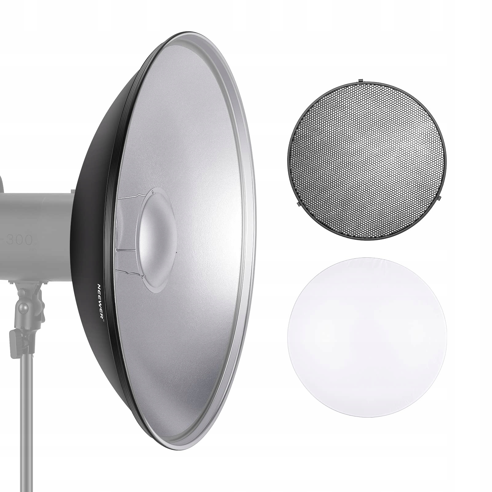 - назва предмета: Neewer Photo Studio Strobe Flash Light Beauty Dish Reflector with Honeycomb Grid and pomszka, 55 сантиметрів для Bowens Gemini Standard, R, RX Strobe тощо