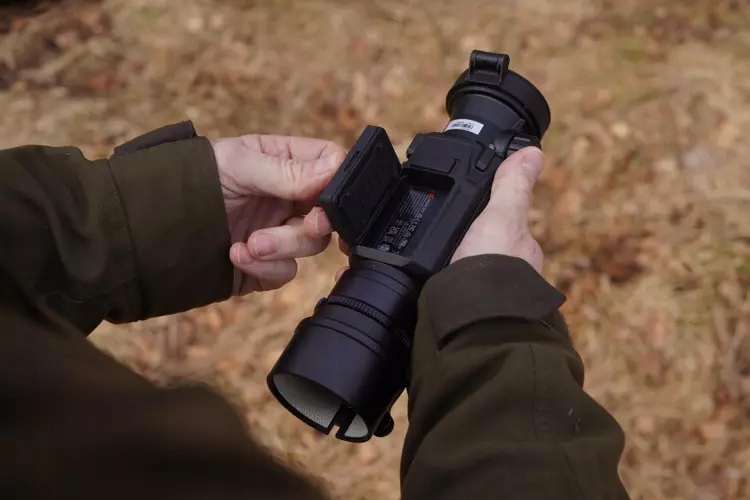Насадний пристрій Камера Thunder Thunder TQ35C 2.0 Hikmicro забезпечує 6,5 годин роботи. Крім того, запасний акумулятор дає вам свободу працювати скільки завгодно довго, навіть цілий день. Крім того, ця батарея працює краще, ніж її аналоги сторонніх виробників, особливо в умовах низьких температур. Час роботи можна збільшити, підключивши павербанк (порт USB-C). Модернізація також дозволила додати функцію заряджання тепловізора через порт USB-C. Пристрій має 16 ГБ вбудованої пам'яті, де можна зберігати записані фотографії або відеоматеріали.