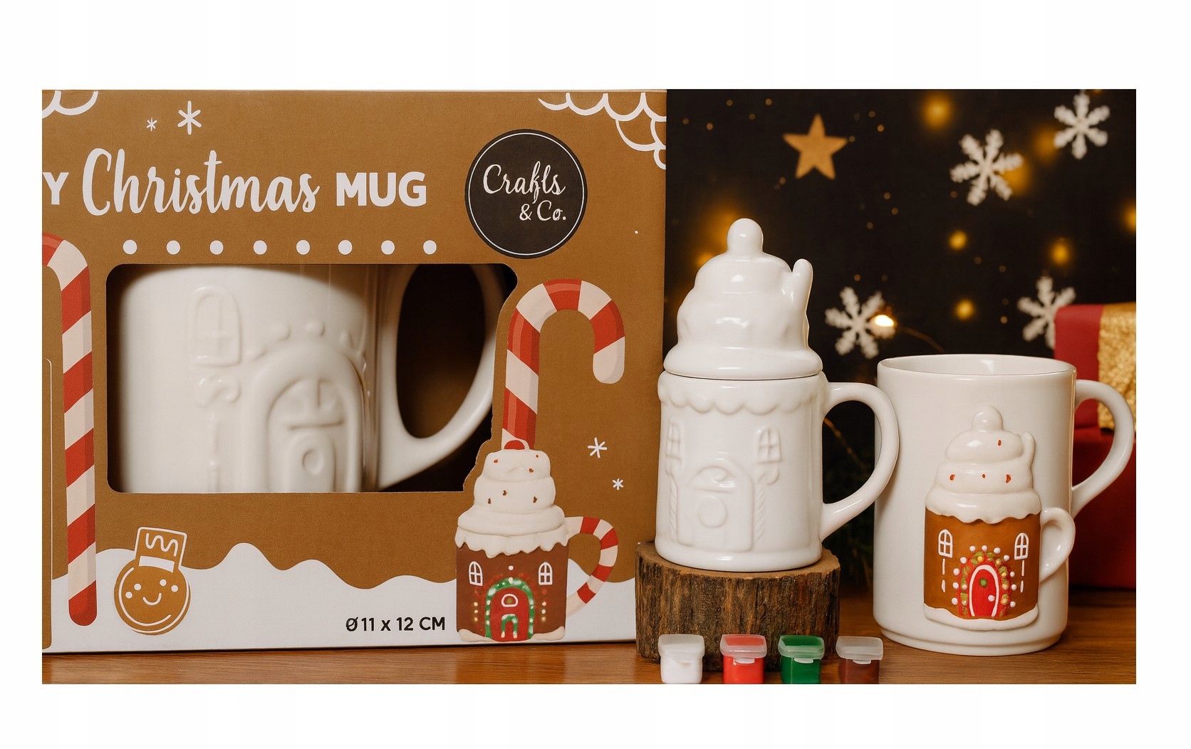 Створіть унікальну, унікальну кухоль у різдвяній атмосфері! Цей набір різдвяних кухлів своїми руками від Crafts & Co. — ідеальний спосіб додати трохи різдвяної магії у свій дім або створити подарунок ручної роботи для своїх близьких.