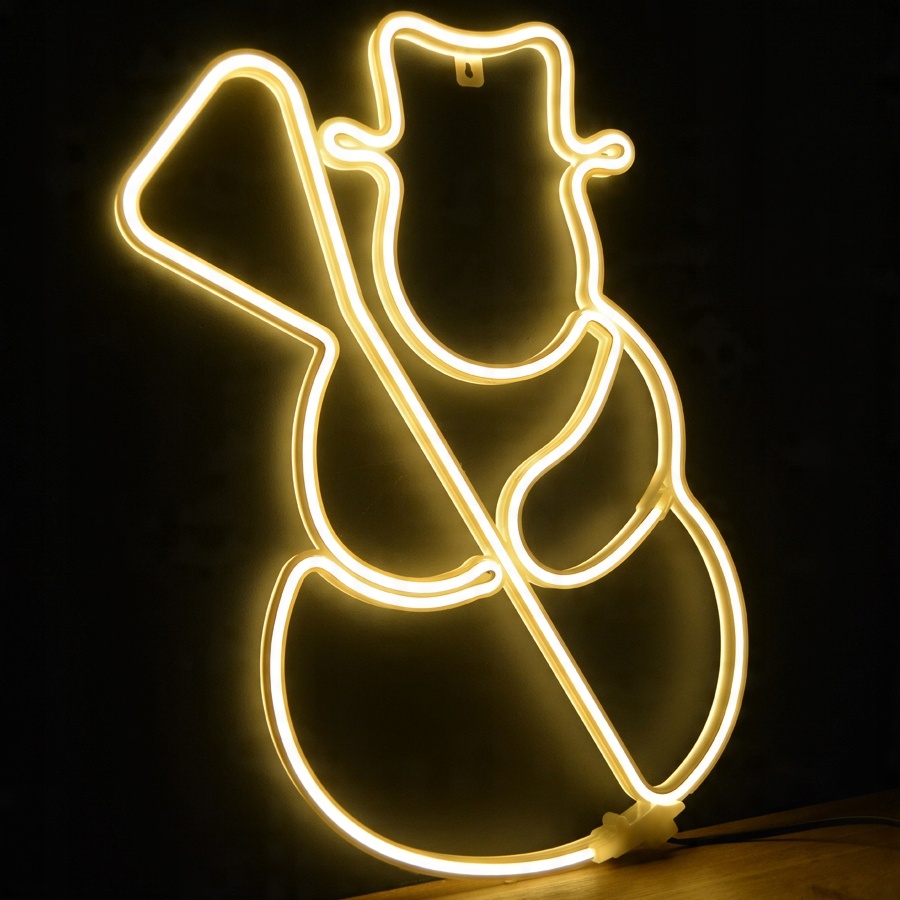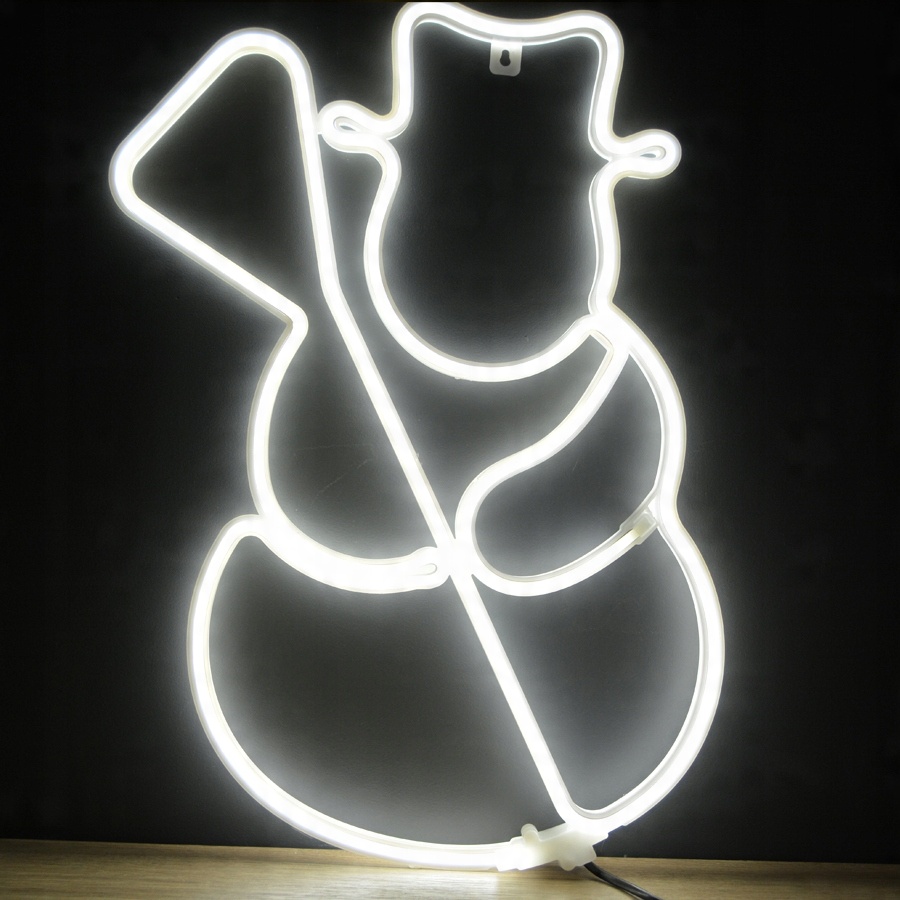 Новорічна неонова прикраса - "Сніговик", підвіска на вікно, 55 см