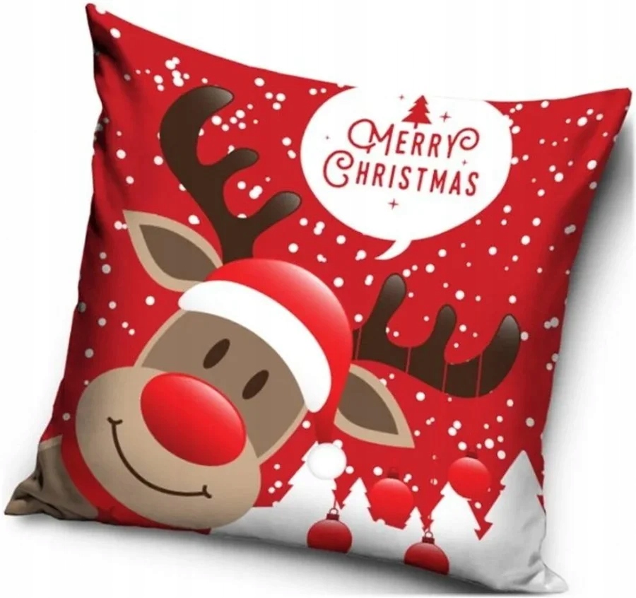 Новорічна подушка - мотив Sat Rudolf. Наволочка виготовлена з приємного ніжного матеріалу, який не мнуться, і застібається на блискавку. Обидві сторони прикрашені однаковим мотивом. Начинка вшита в власний чохол. Тому його можна знімати для полегшення догляду за покриттям. Розмір подушки 40 х 40 см +/- 2 см.