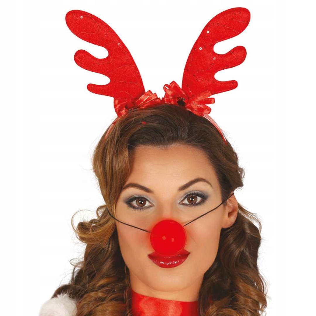 Чудова пов'язка з червоними оленячими вухами та бантами! Додатково є світиться носик на тонкій нитці! Різдвяний Рудольф як ідеальний гаджет для фотосесії з родиною чи походу на різдвяну вечірку з друзями!
