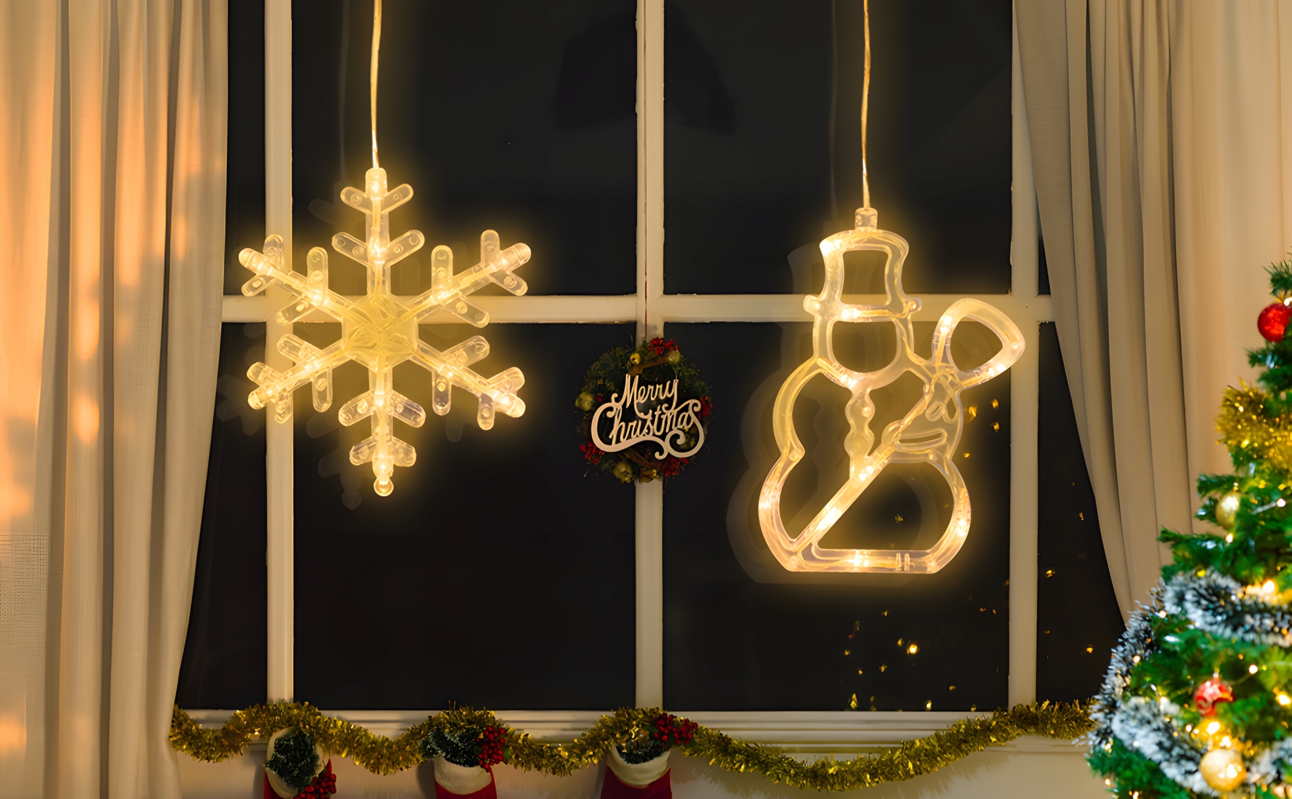 ✅ У набір входять світильники у формі сніжинки та сніговика, які не тільки додають шарму, але й дозволяють різноманітно компонувати.