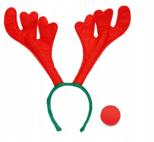 - пов'язка з оленячими рогами та червоним носом Рудольфа. Розмір ріжка: 26 см х 16 см. Діаметр носа приблизно 5 см