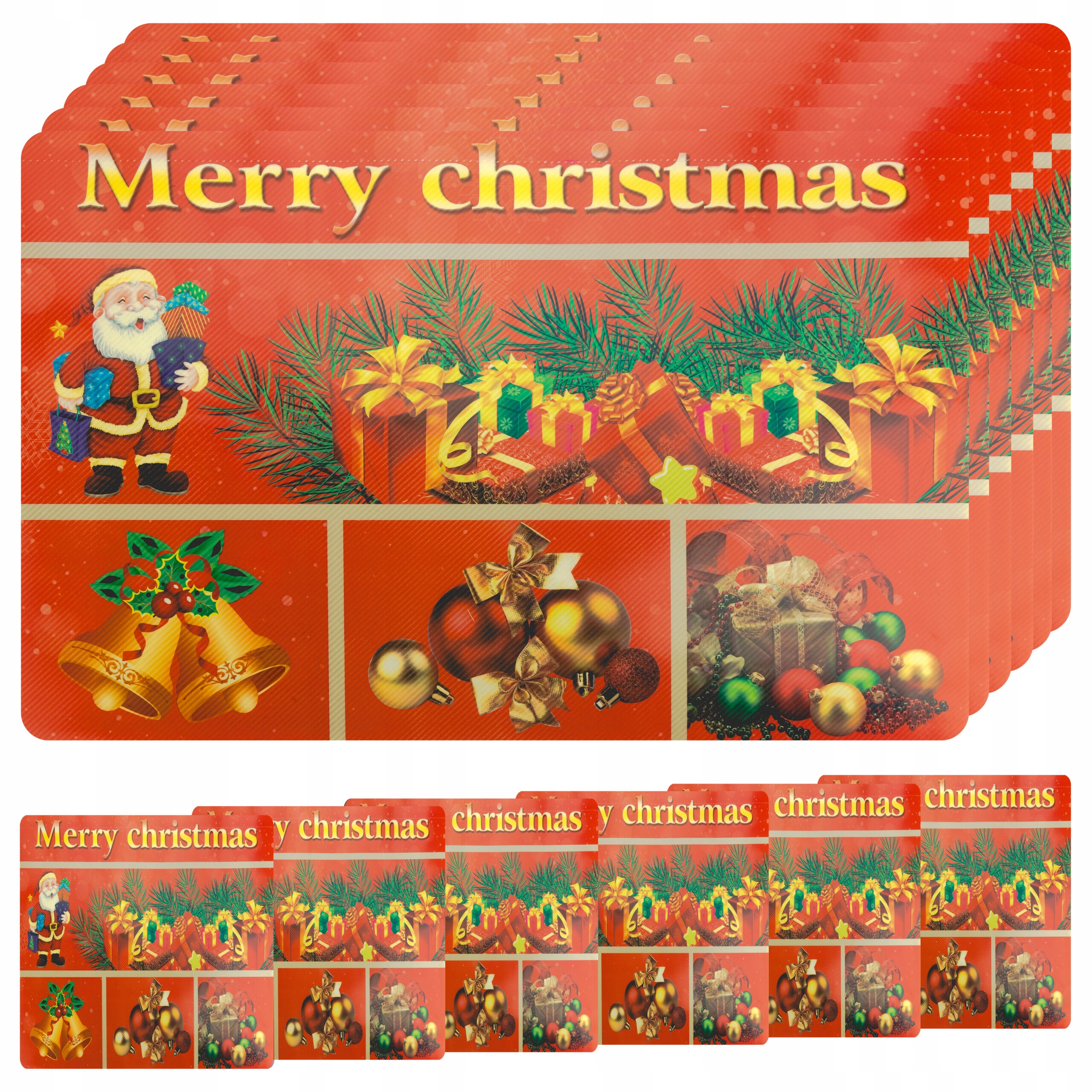 ⭐️РіздвяніPVC серветки поєднують функціональність з естетикою, створюючи ідеальне доповнення до вашого різдвяного столу. У набір входить 6 предметів розміром: 27 x 42 см і 6 шт. розмір штук: 9,5 х 9,5 см. Великі серветки ідеально підходять для основних тарілок, тоді як маленькі ідеально підходять як серветки для чашок і менших страв.