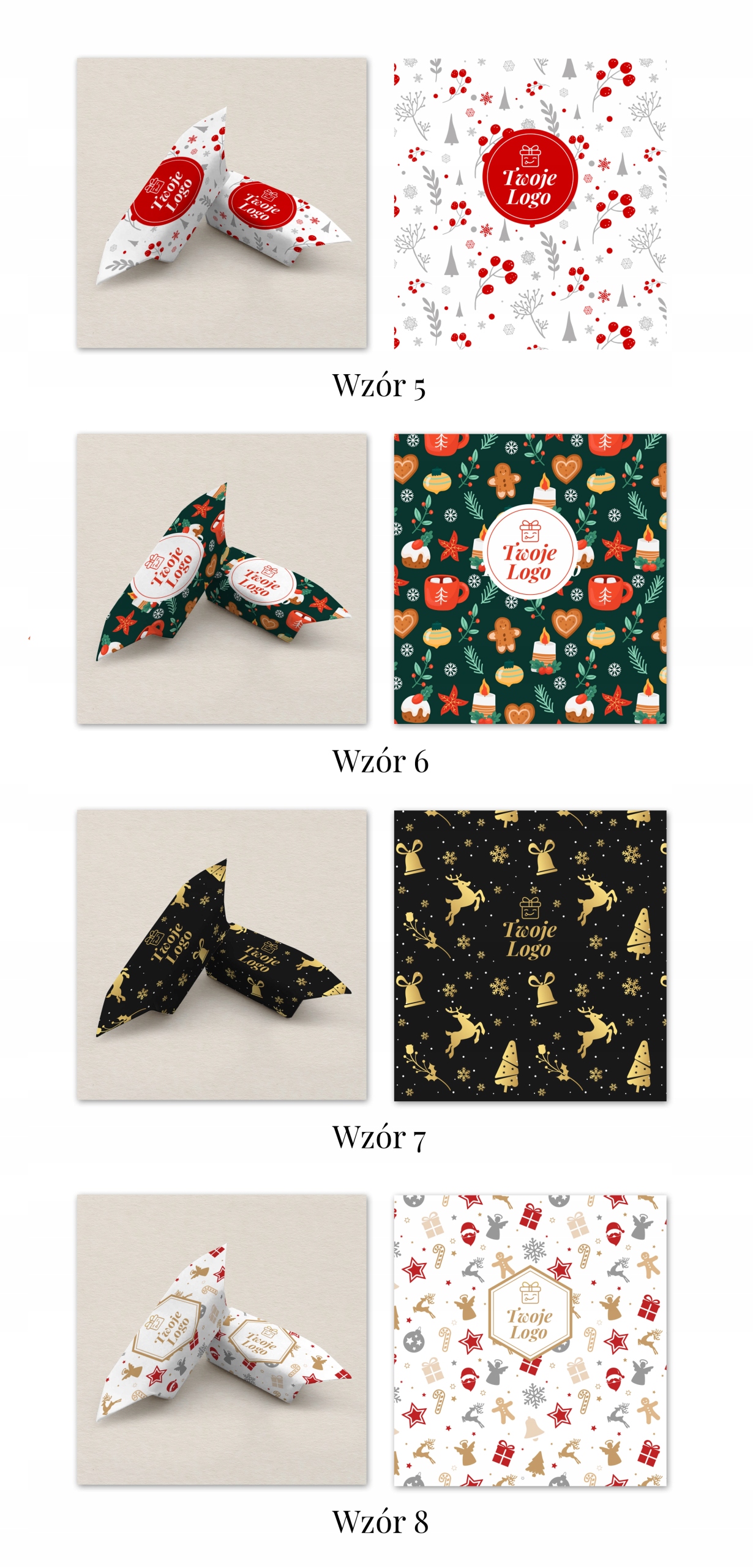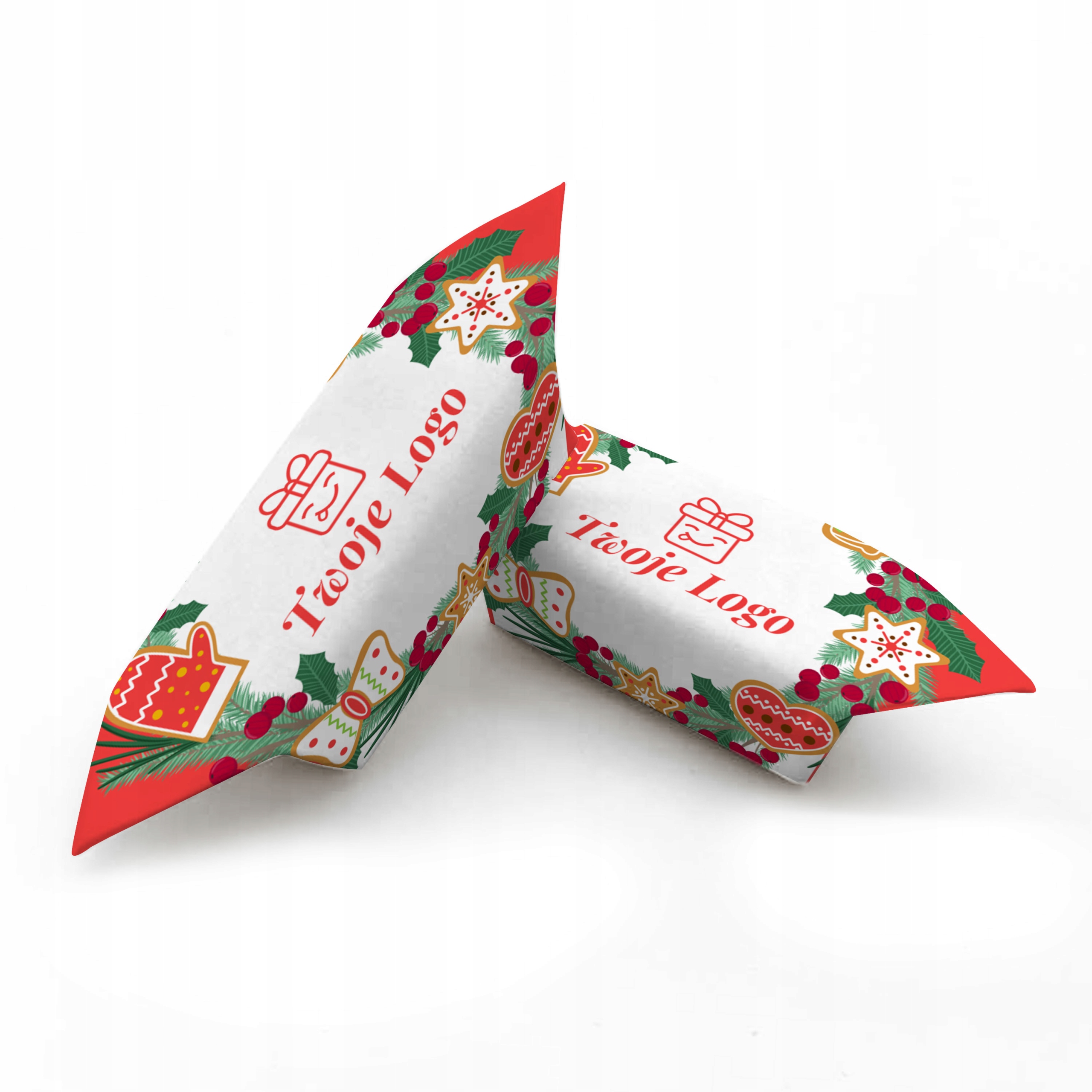 Кожна помадка загорнута в красивий папір із різдвяним мотивом. Ви можете додати власний напис, логотип або побажання, створюючи унікальний персоналізований подарунок, який порадує кожного одержувача.