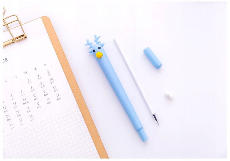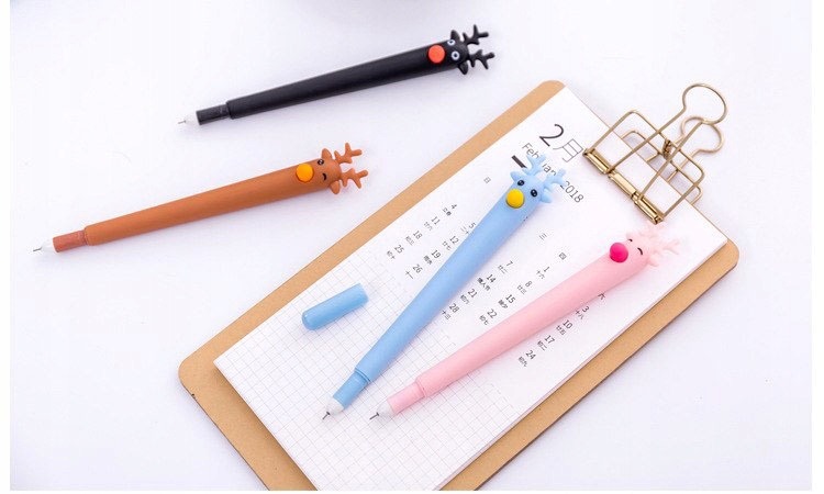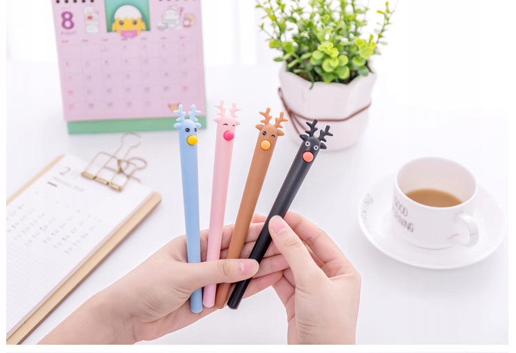 Finerliners у формі північного оленя. Кожна тонка підводка містить змінну заправку з чорного гелю. Ми рекомендуємо придбати набір із 10 стандартних гелевих вставок або 10 гелевих вставок, які можна стирати, на тому ж аукціоні. Кольори вставок можна вільно вибирати та змішувати. Після покупки, будь ласка, надайте обрані кольори файлайнерів і, якщо є, кольори рефілів у повідомленні продавцю.