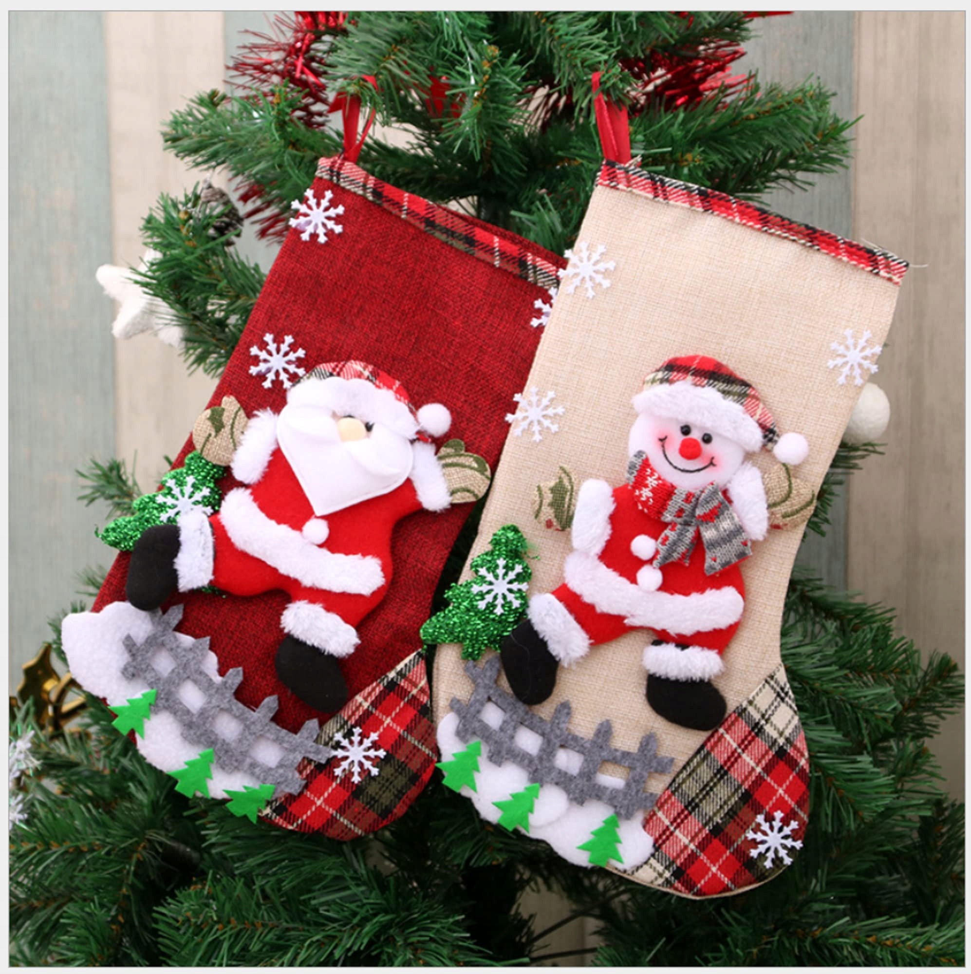 Класичний стиль: упаковка з 4 чарівних панчох із зображенням Санти, Сніговика, ведмедика та оленів. Вони точно виглядатимуть чудово, коли їх повісять на ялинку. Ідеальна прикраса для дому, ресторану, клубу, бару.