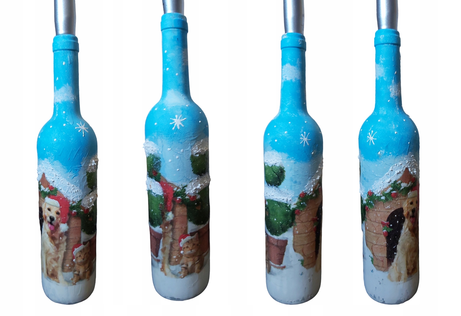 Підсвічник для різдвяної пляшки в стилі декупаж