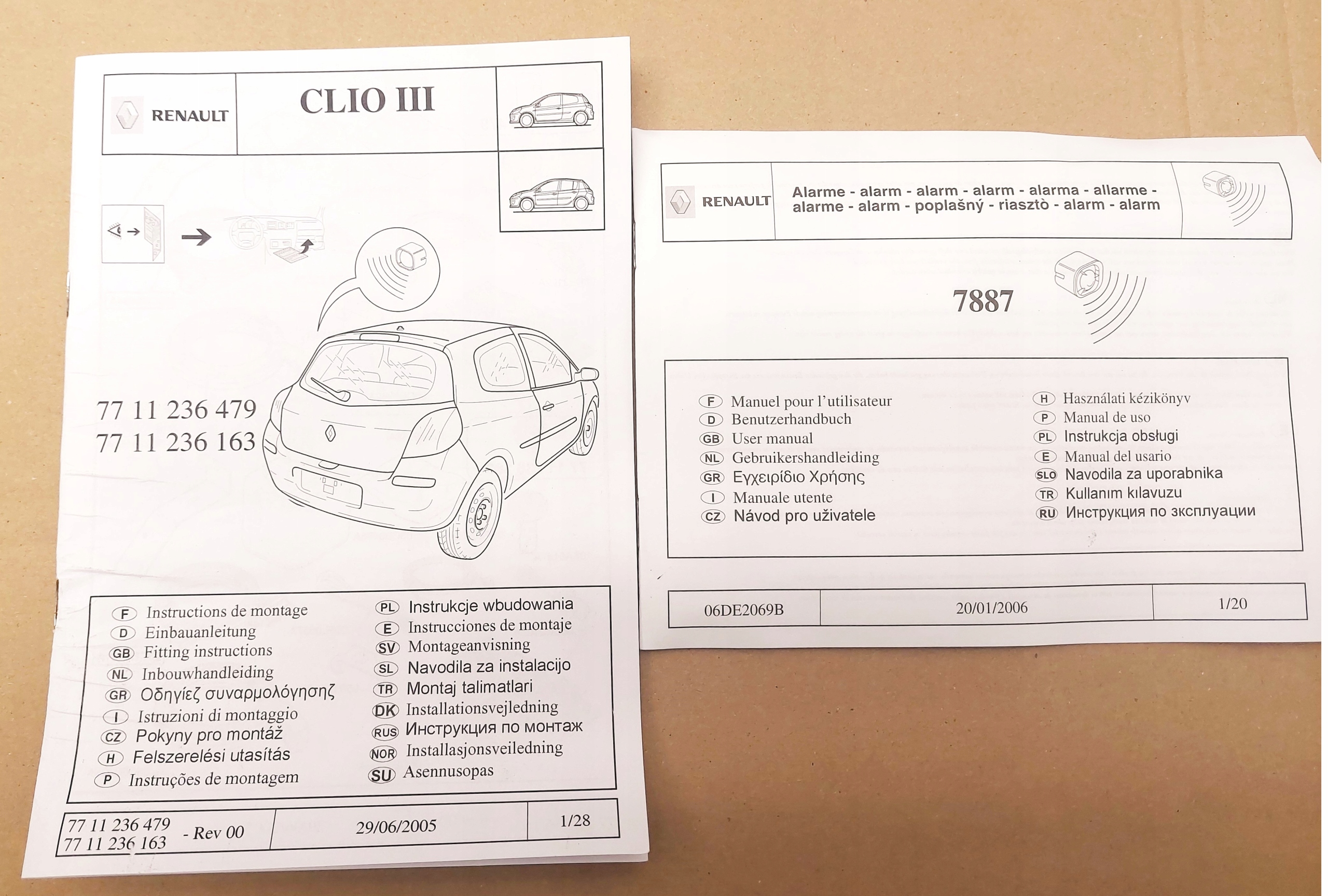 NOWY ORYGINALNY ZESTAW KOMPLET ALARM RENAULT CLIO III - 7711236479