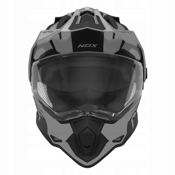 - Enduro Cross NOX N312 - це шолом для подорожей з козирком і візиром, виготовлений з полікарбонатної оболонки з використанням дуже міцних матеріалів.