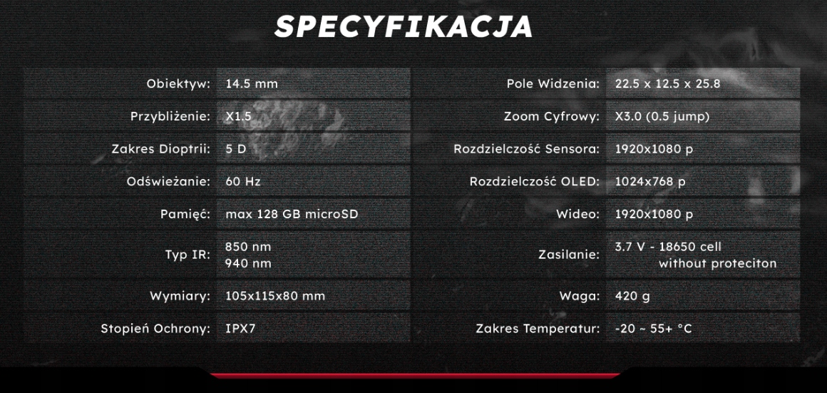 Завдяки можливості встановлення запуску наближення зі значенням 3 x , lunar 2.0 може працювати не лише з регульованими ліжками, але й із прицілами з постійним збільшенням. Скорочення шуму - наступний крок перед конкуренцією. Після введення в меню пристрою ми маємо можливість встановити рівень потужності розряд зображення на початку пристрою. Кожен, хто провів багато ночі в риболовлі, оцінить цю дуже корисну функцію. Це дозволяє буквально "очищення" зображення і дозволить нам оцінювати кожну тварину найбільш точно і, як важливо, область, що стоїть за нею.