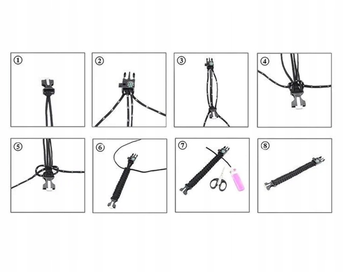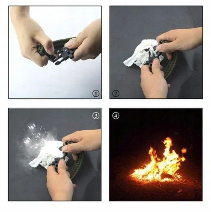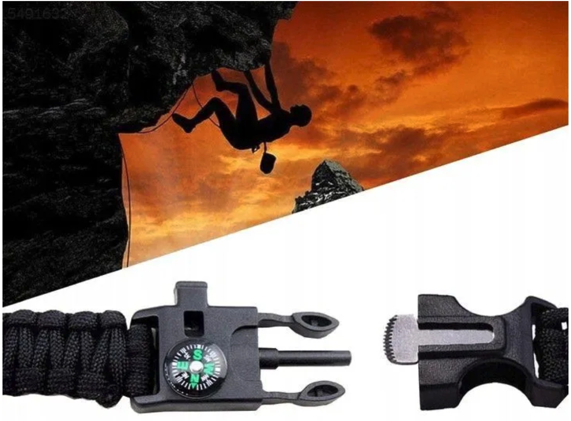 - кріплення браслетів : Застібка з кременем магнію, свистявий сигнал та міні -компас