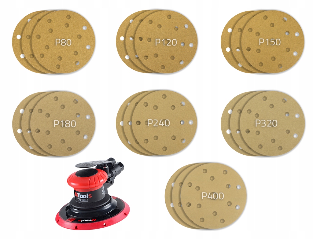 Пневматичний штрих 2,5 мм м'який диск+ набір абразивних дисків HMF 14+ 1 отвори P80-400 21 PCS