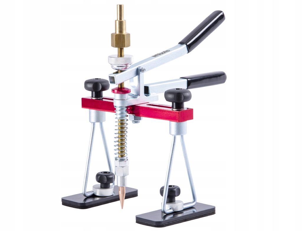напр. Після граду або після пошкодження паркування. Завдяки цьому він може працювати майже на будь -якій поверхні. Ручка Puller змушує стебло рухатися вгору. Висота витягування може бути регульована дуже точно. Puller оснащений точковим електродом для витягування вм'ятин, адаптером для підключення зйомки до споттера (кріплення D10 мм і 16 мм), а також ручка, яка дозволяє витягнути вм'ятини за допомогою неінвазивного методу за допомогою грибів, приклеєних до покриття лаку. Матеріал: Алюмінієвий алюміній. Surface