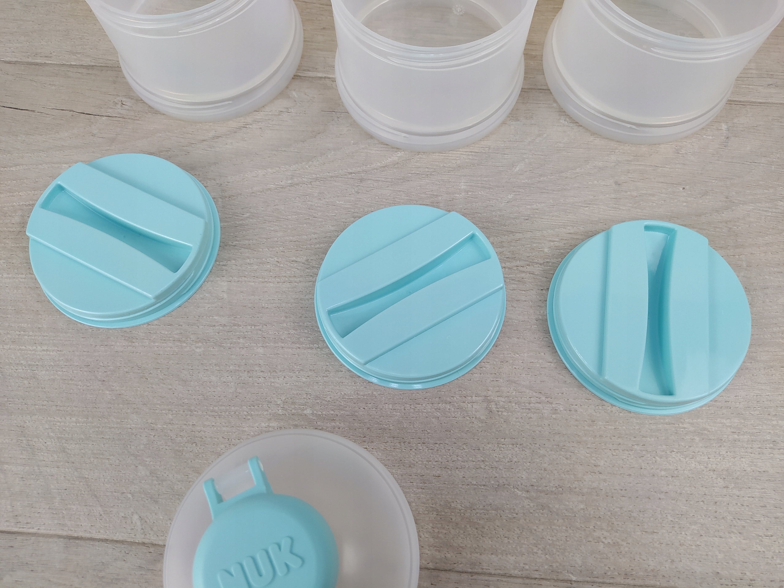 NUK 10256342 — це практичний дозатор молочної суміші, що складається з 3 окремих контейнерів, що загвинчуються, які можна покласти один на інший. Кожна ємність має свою кришку, а у верхній кришці є зручний зливний отвір, що дозволяє швидко та гігієнічно приготувати порцію молока.