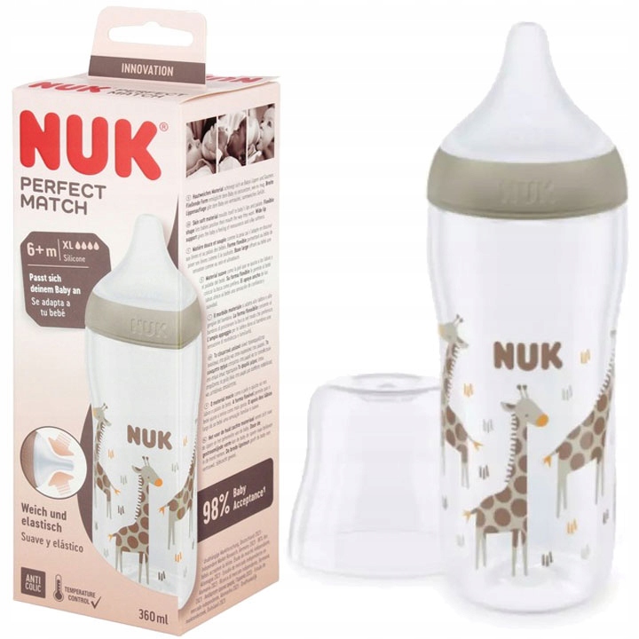 NUK PERFECT MATCH ПЛЯШКА 360мл 6м+ СИЛІКОНОВА СОСКА XL ДЛЯ КАШІ