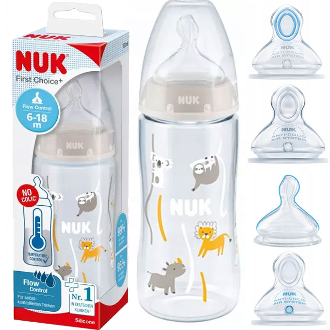 Протягом багатьох років пляшка першого вибору Nuk найчастіше вибирала через те, що годування їх максимально близьке до годування груддю. Новий Nuk First Choice+ соски, однак, ще ближче до природи - що дитина відчуває себе так, ніби груди матері смокчуть і забезпечити здоровий розвиток щелепи дитини.