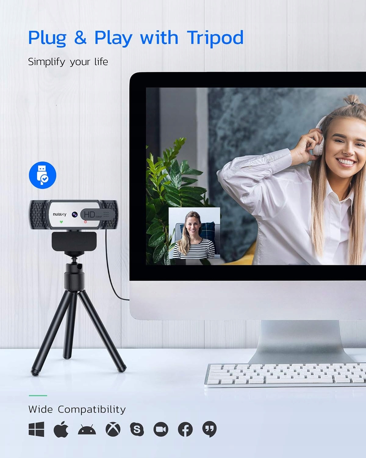 веб -камера Nulaxy C906 з автоматичним регулюванням фокусування, обкладинкою мікрофона та конфіденційності, підключенням та відтворенням USB -веб -камери, веб -камерою FHD 1080p з виправленням світла до відеоконференції, онлайн -класами з Skype, Zoom та Guy. Розпаковано для перевірки - у ідеальному стані.