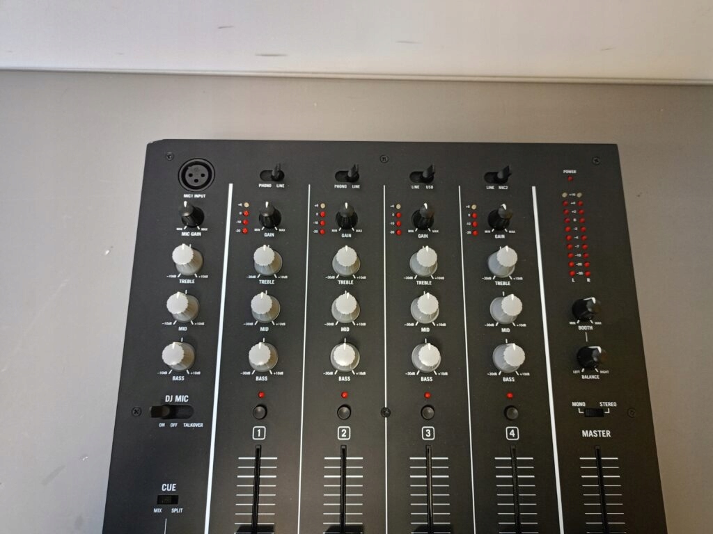 M6 USB має всі необхідні функції, включаючи трирівневу корекцію та світлодіоди для контролю рівня сигналу. Кросфейдер можна легко замінити та має регульовану криву різання. Спеціальний мікрофонний канал має функцію розмови.