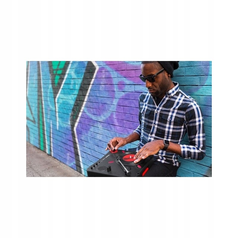 - Вбудований в ручці, що дозволяє легко переносити Numark PT01 Scratch