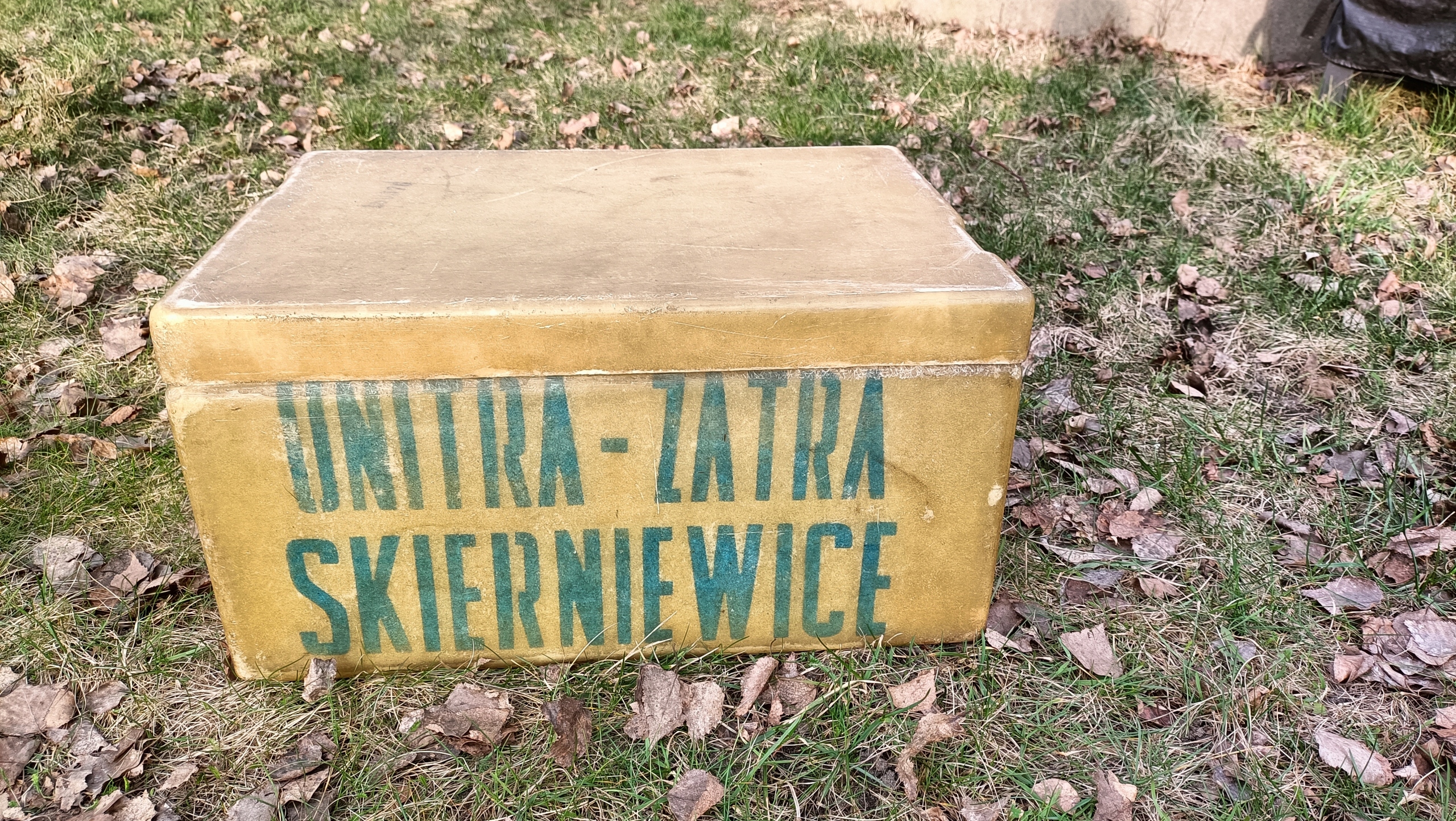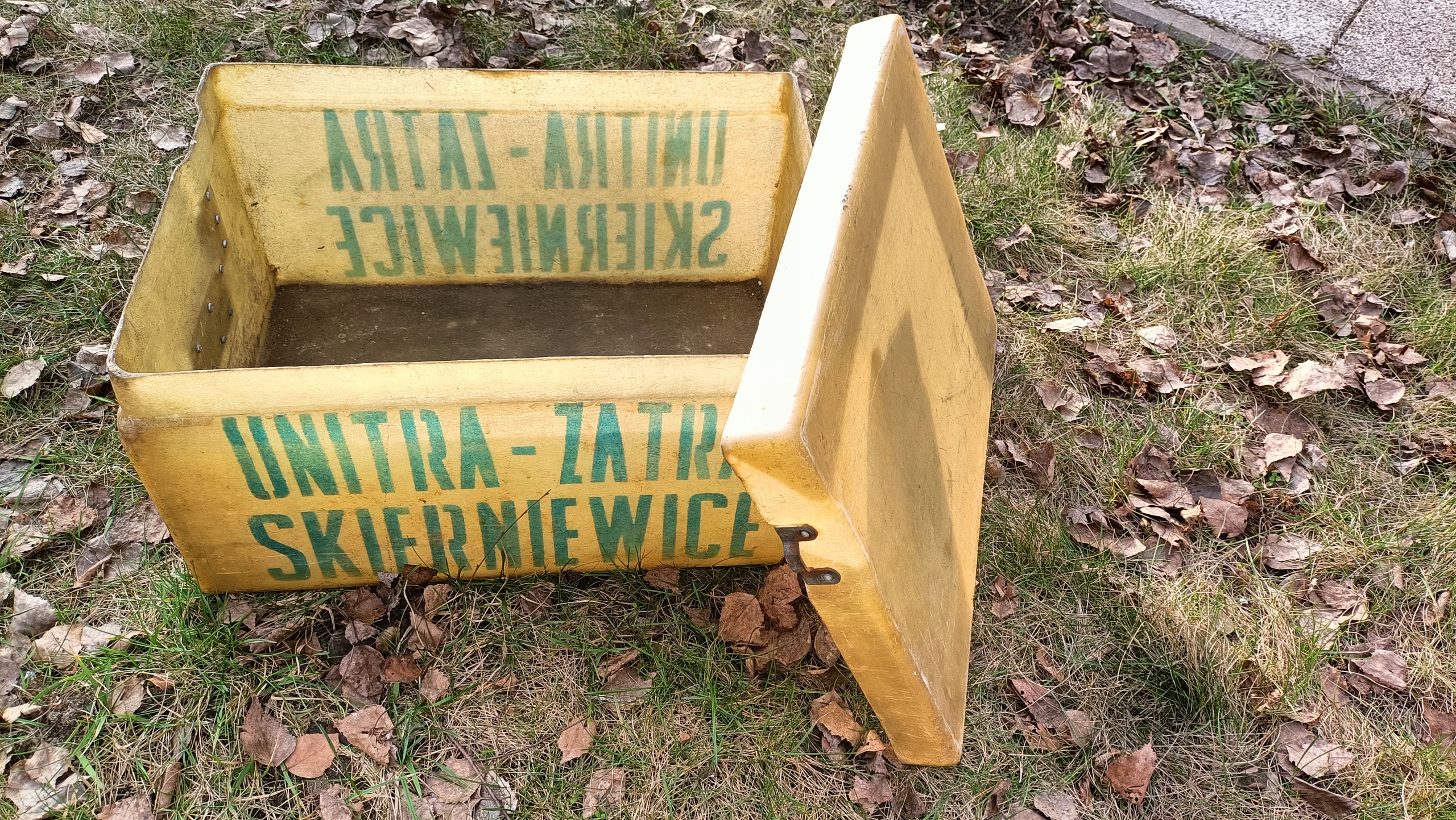 Велика стара коробка зі скловолокна з логотипом UNITRA ZATRA Skierniewice