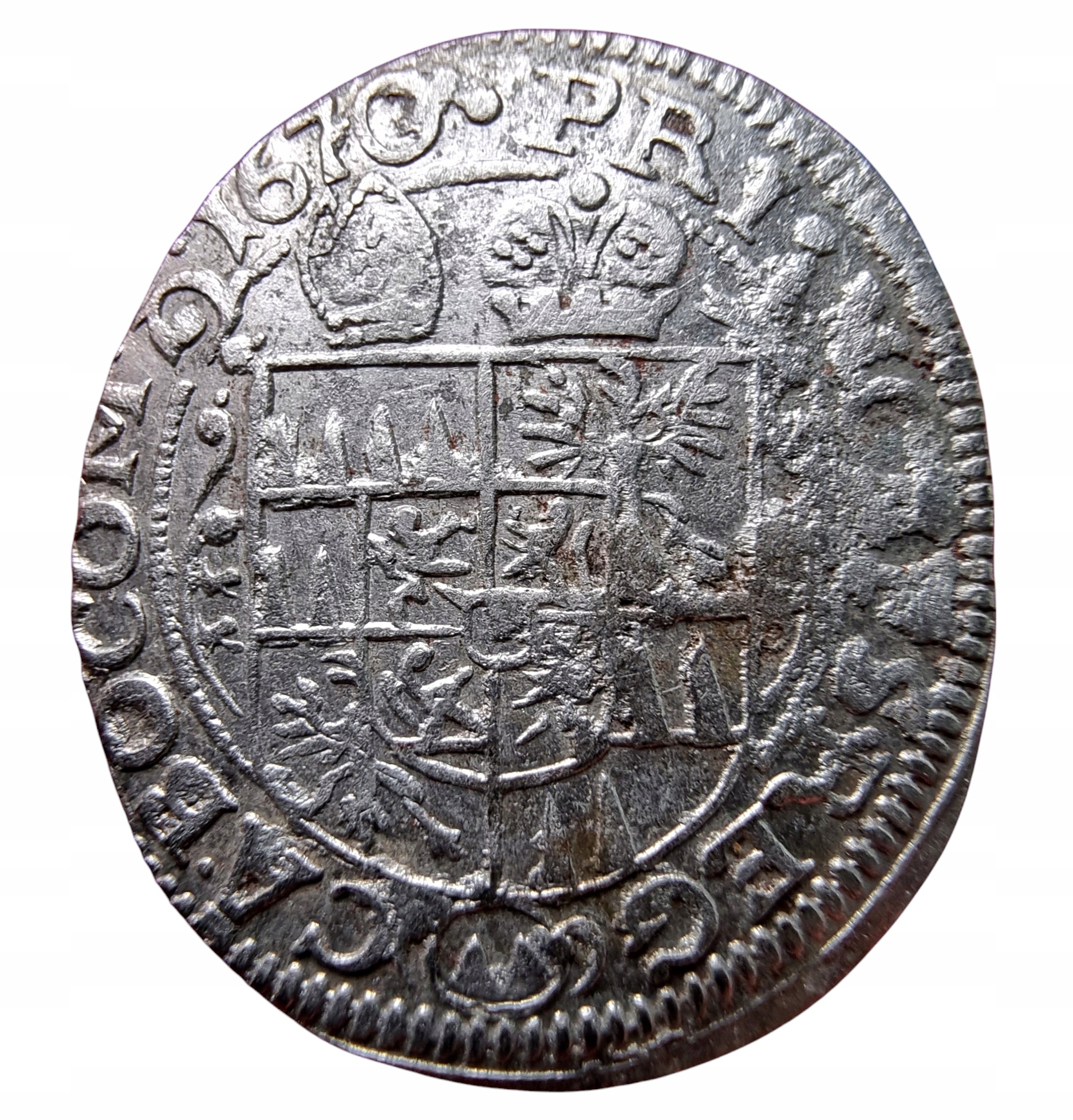 Numismati D1345 3 Krajcary 1670 Karol, Olomouc, Silver