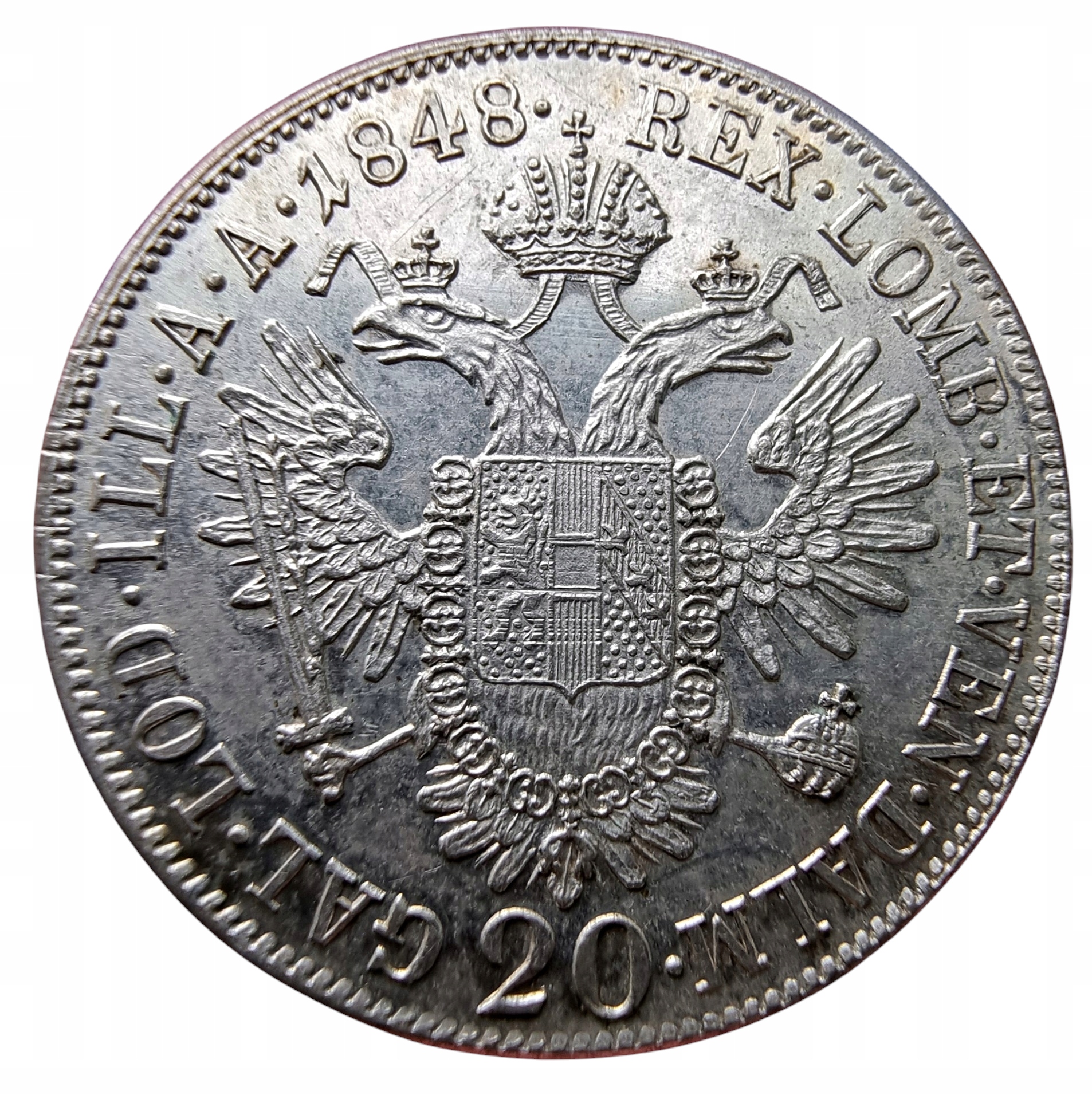 NumisMATI D827 20 krajcarów 1848 Ferdynand, srebro