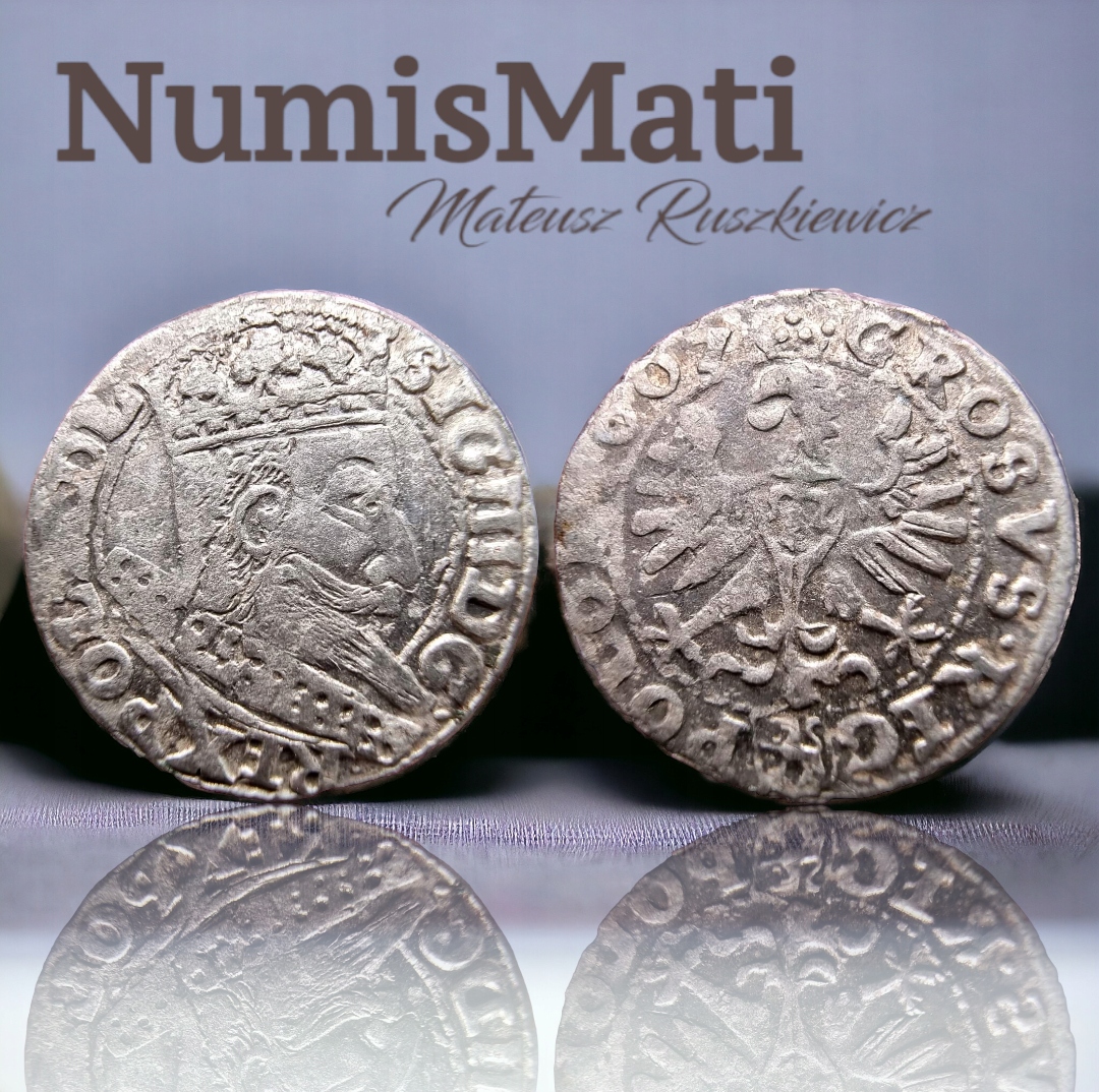 NumisMATI Grosz 1607 Zygmunt III Waza, Краків, срібло, стан III/III+, гарний