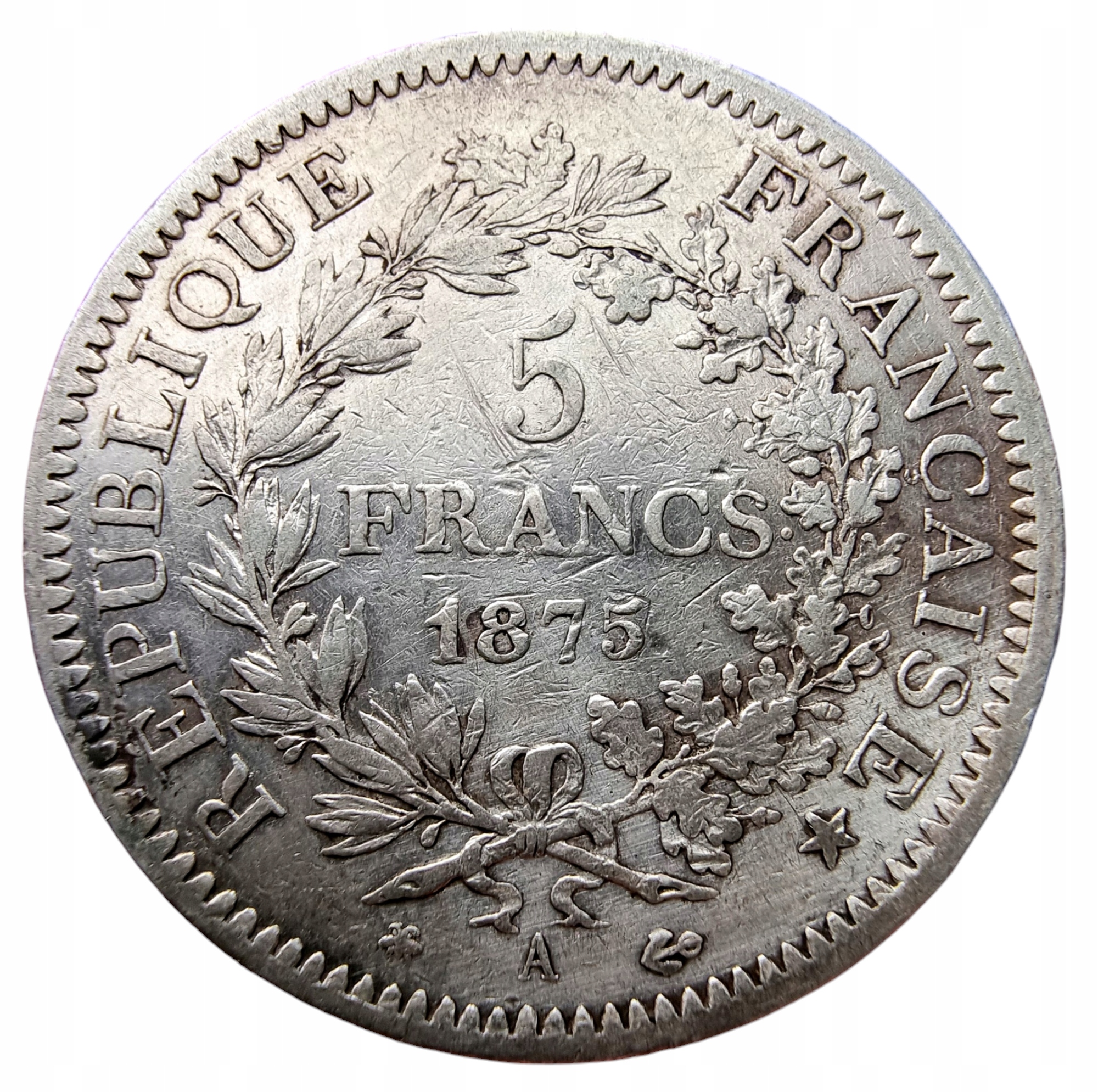 NumisMATI k398 5 франків 1875 р. велике срібло, очищене