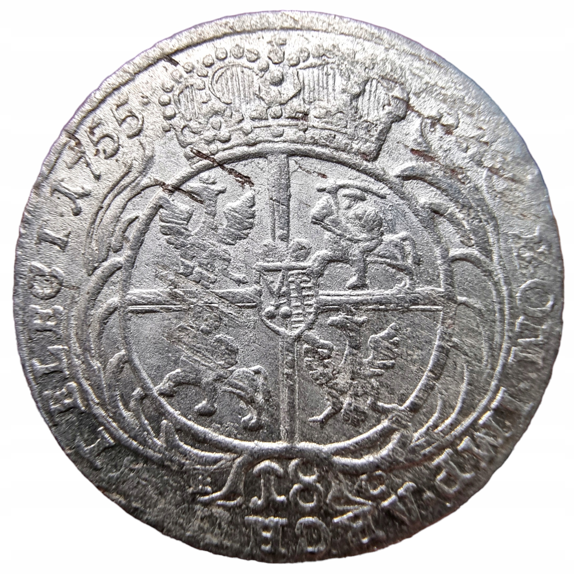 NumisMATI WS1344 Ort 1755 August lll Sas, piękne srebro