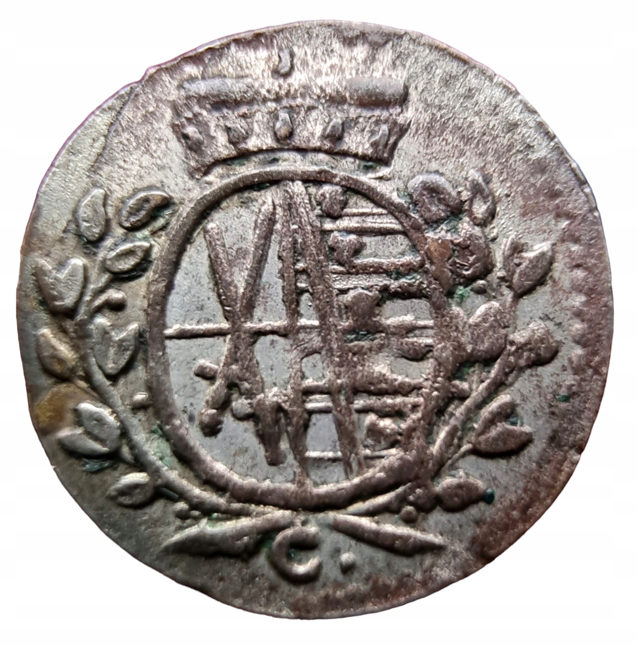 NumisMATI WS51 1 pfennig 1765 Fryderyk August bardzo ładne srebro