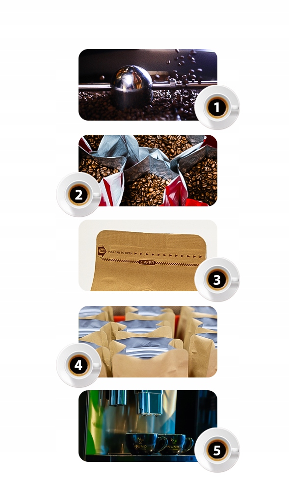 Коли обсмажувач вирішить, що кава вже відпочила, зерна поміщені в упаковку, яка захищає їх смак і аромат і в той же час дозволяє їм продовжувати дозрівання. У пакетах є клапан, завдяки якому кава «дихає». Це гарантує, що наші клієнти отримають свіжі та ароматні зерна.
