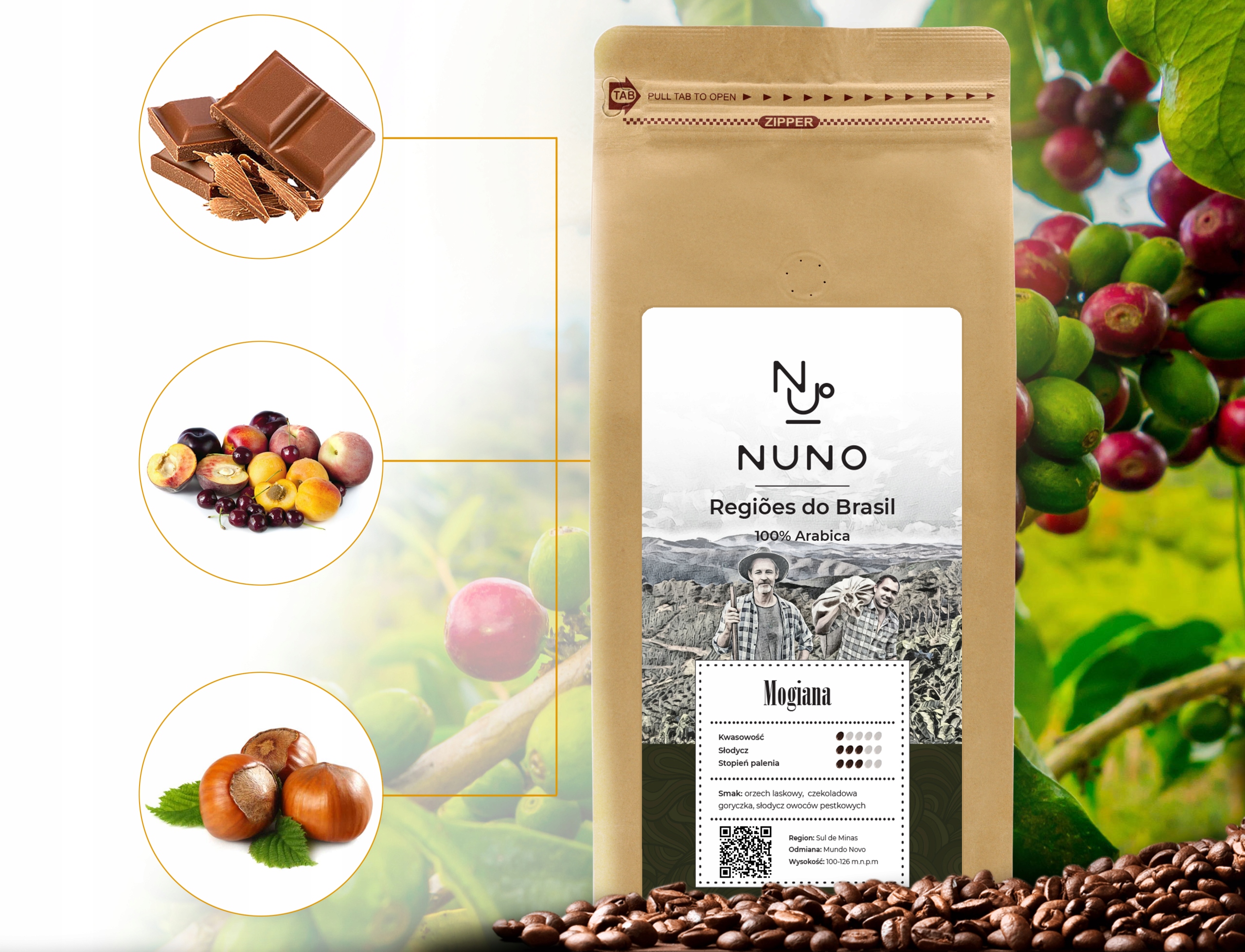 Ми знаємо, що чудовий смак кави залежить від високоякісної сировини. Кава з обсмажувальної фабрики Nuno починає свій шлях у вигляді зелених відбірних кавових зерен з різних куточків світу, включаючи: Бразилію, Колумбію, Індію та В'єтнам. Кожен вид зерна ми готуємо відповідним чином. Разом вони створюють ідеально збалансовану суміш.
