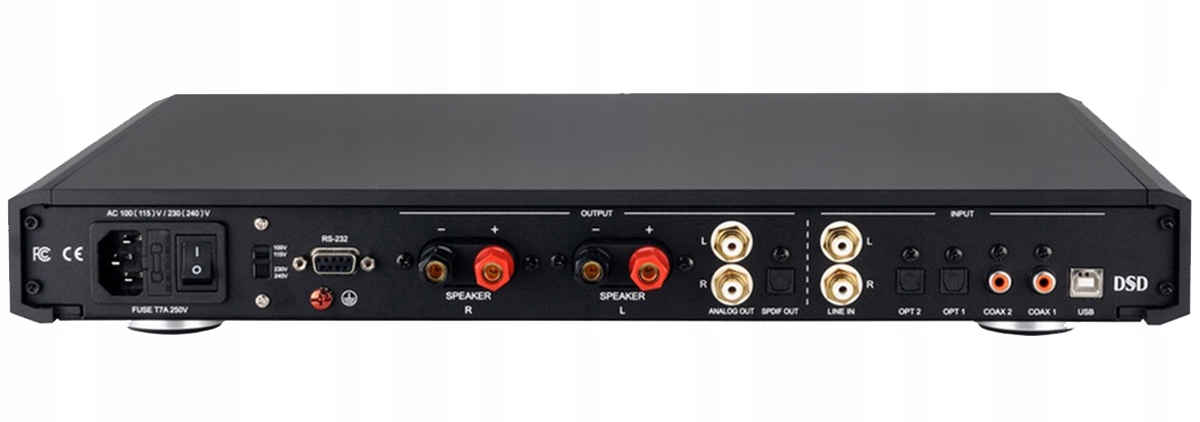 - Формати через USB: 44,1 кГц, 48 кГц, 88,2 кГц, 96 кГц, 176,4 кГц, 192 кГц, 352,8 кГц, 384 кГц і DSD 2,8 МГц, 5,6 МГц, 11,2 МГц