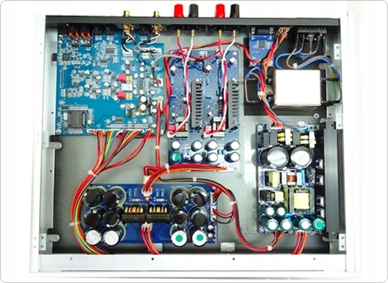 Аналогова модуляція перемикається на 600 кГц (набагато вище, ніж у традиційних підсилювачах класу D). Все це живиться від джерела живлення з технологією SMPS (Switch-Mode Power Supply)з ефективністю до 93%.