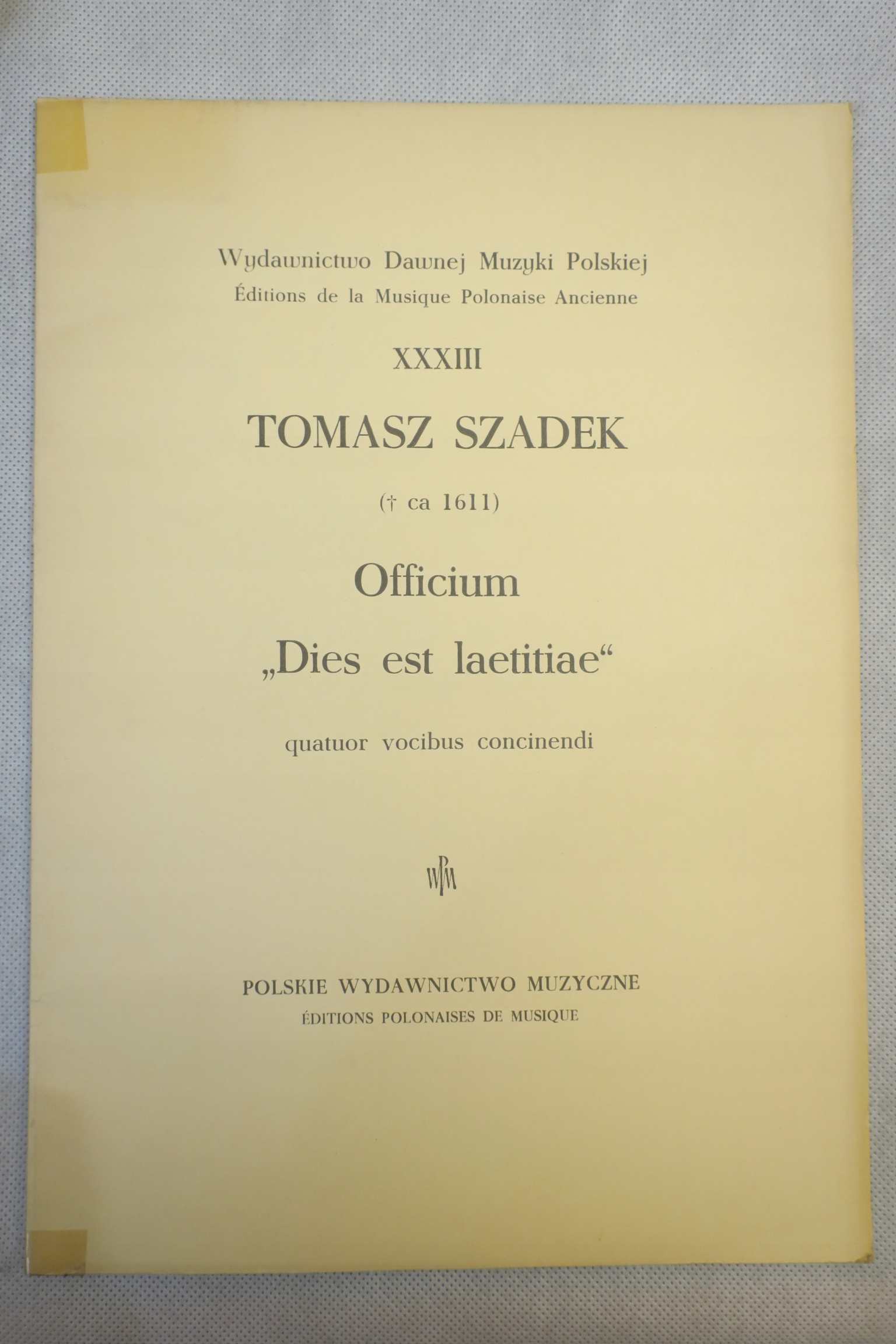 NUTY PWM TOMASZ SZADEK DAWNA MUZYKA POLSKA OFFICIUM DIES EST LAETITIAE