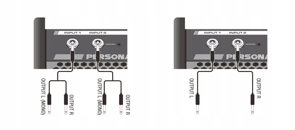 - Два входи (6,3 мм моно) або один стереовхід (6,3 мм TRS)