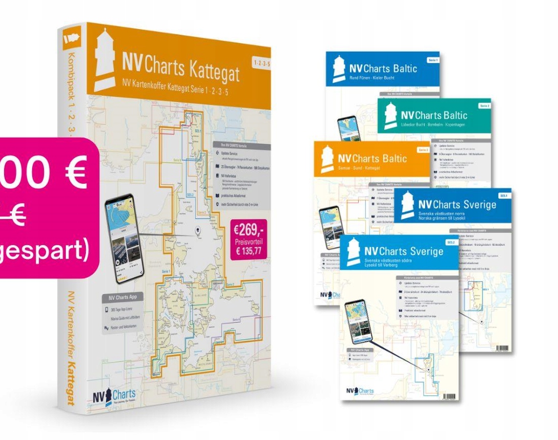 S 12 South Funen 1 : 80 000 , Schlei 1 + 2 1 : 35 000 , NOK Кільський канал 1 + 2 (5 карт) 1 : 55 000 , S 13 Fehmarn 1 : 80.000 ,