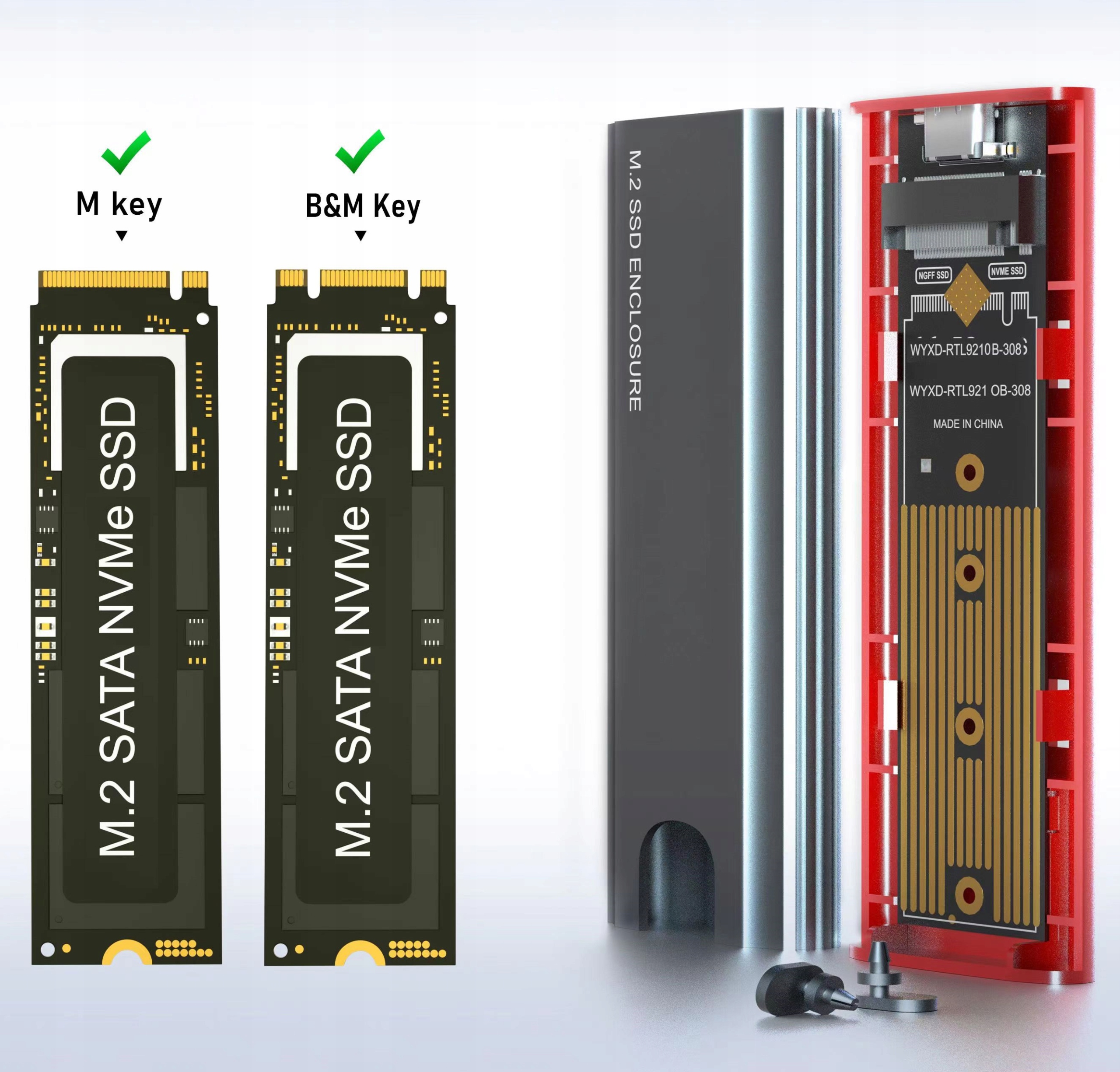 Сумісність із M.2 NVMe/SATA M, B і M Key SSD.